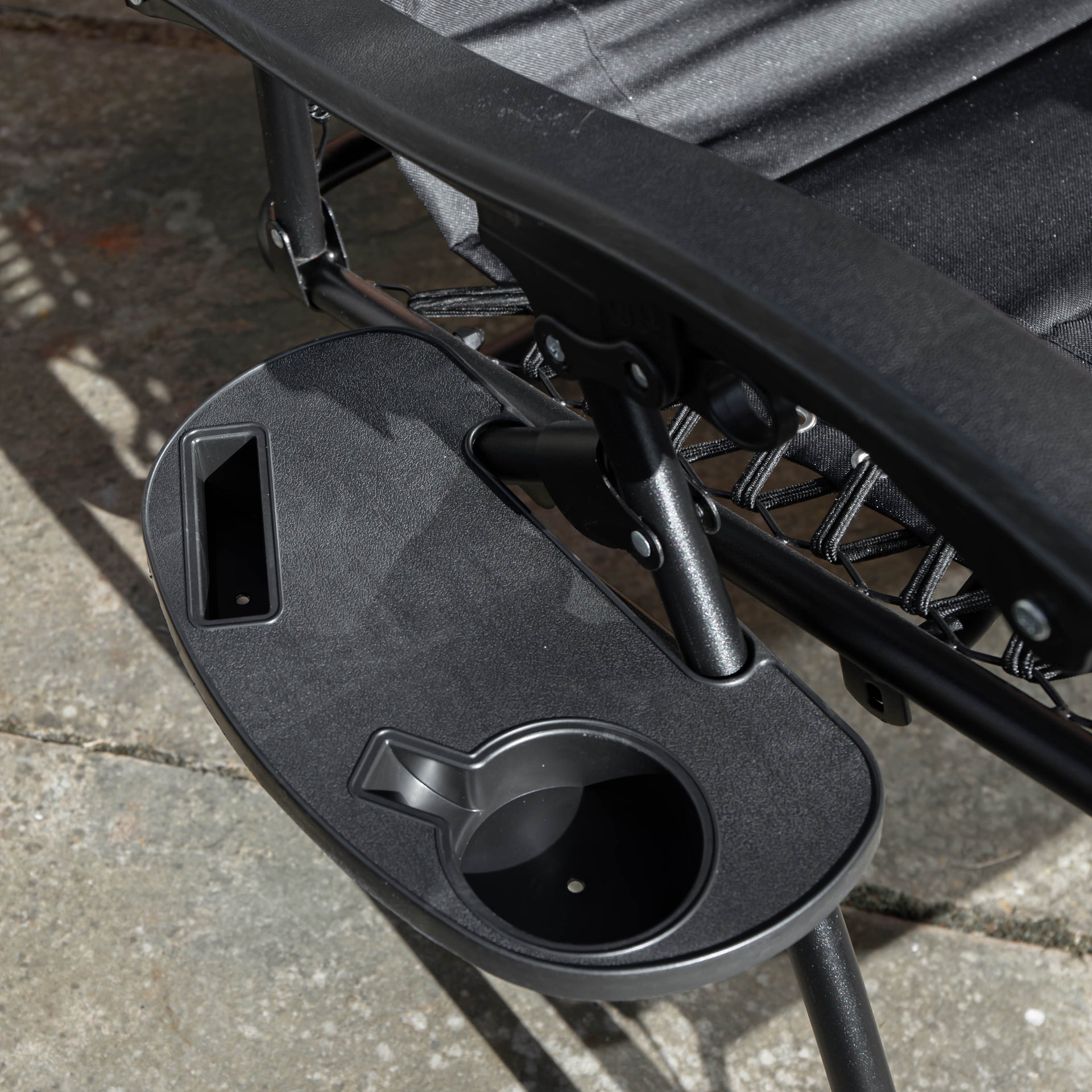 For enhanced relaxation, the chairs includes a removable padded headrest pillow, offering additional neck and head support exactly where you need it. Whether you're reading, napping, or simply soaking up the sun, the pillow adds a touch of tailored comfort to your outdoor retreat. Stay refreshed and organised with the detachable cup holder tray, which securely fastens to the side of the chair. Designed to hold drinks or your phone within easy reach.