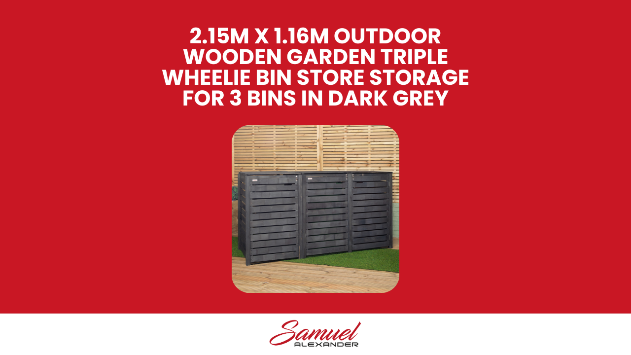 2.15m x 1.16m Outdoor Wooden Garden Triple Wheelie Bin Store Storage for 3 Bins in Dark Grey
