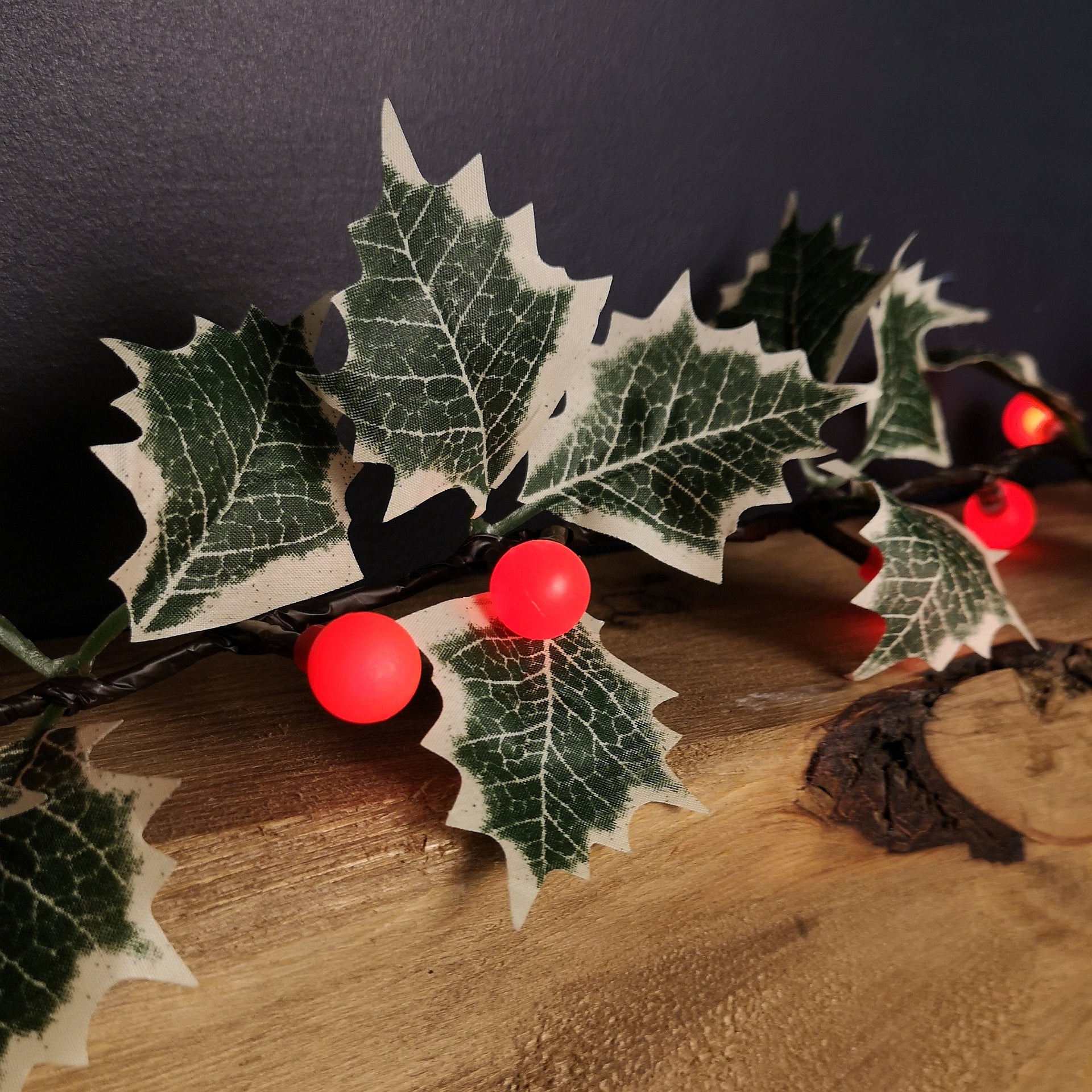 1.8m Artificial Garland with Berries & Lights Battery Operated with 35 Warm White LEDs