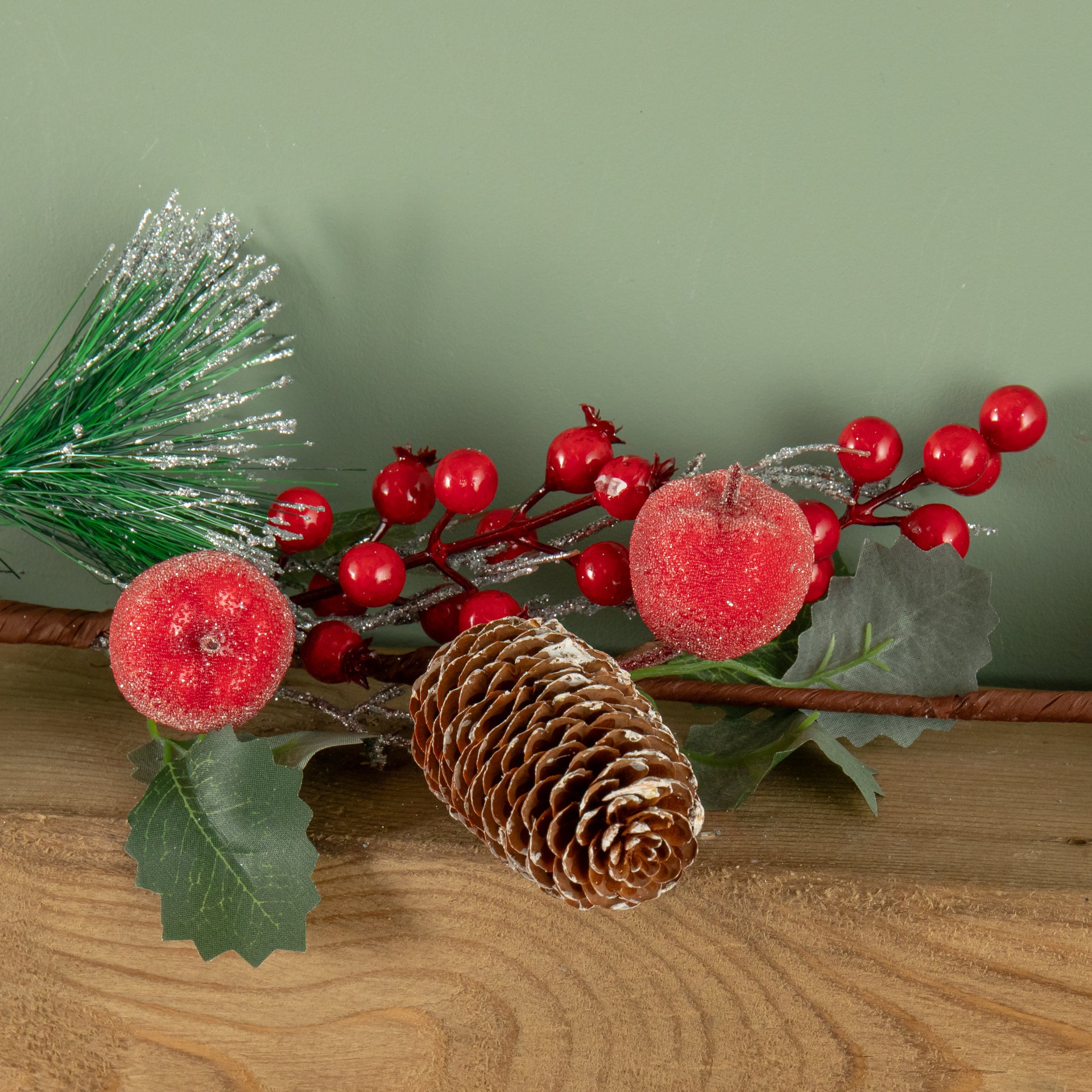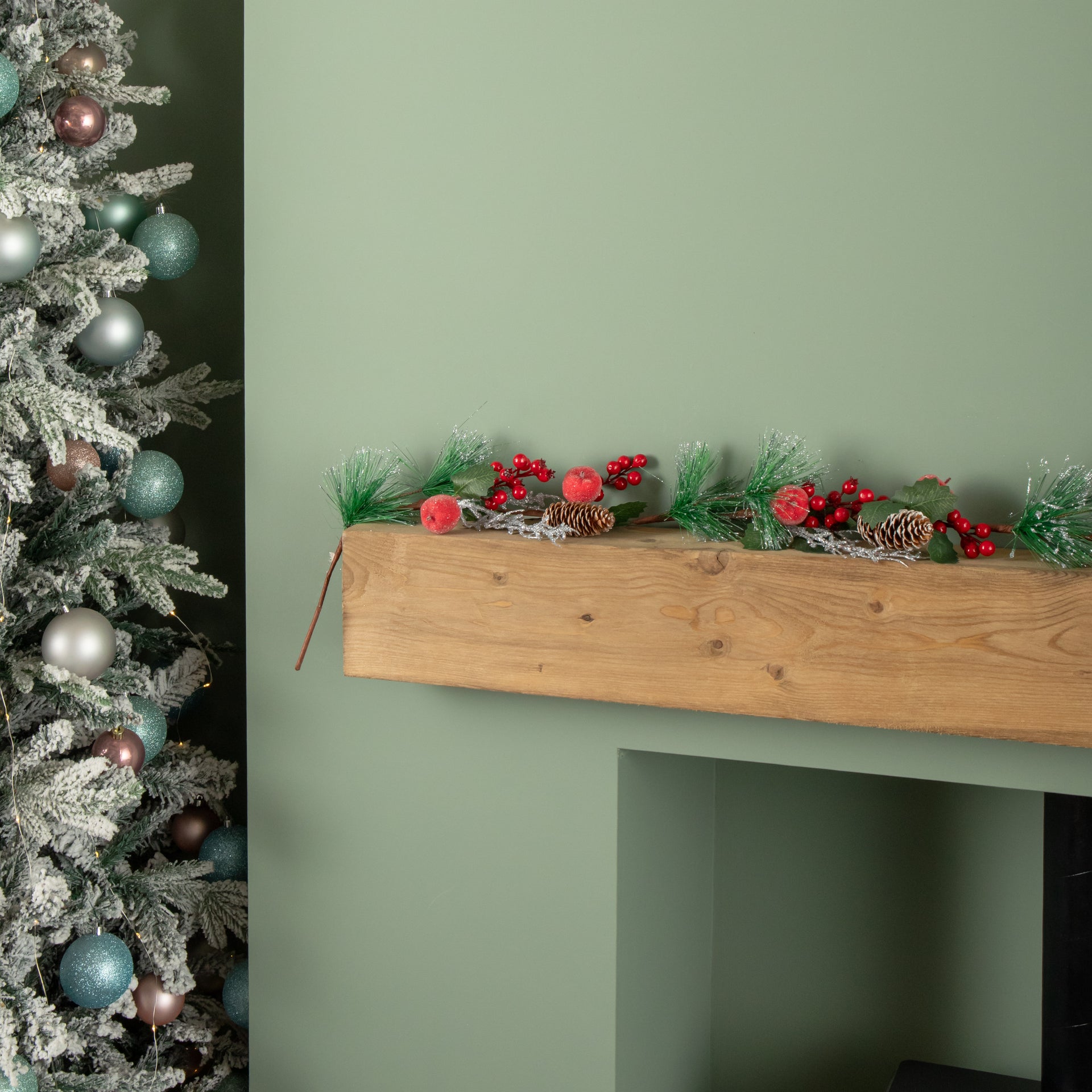 1.5m (150cm) Christmas Garland with Red Berries, Frosted Apples and Pinecones