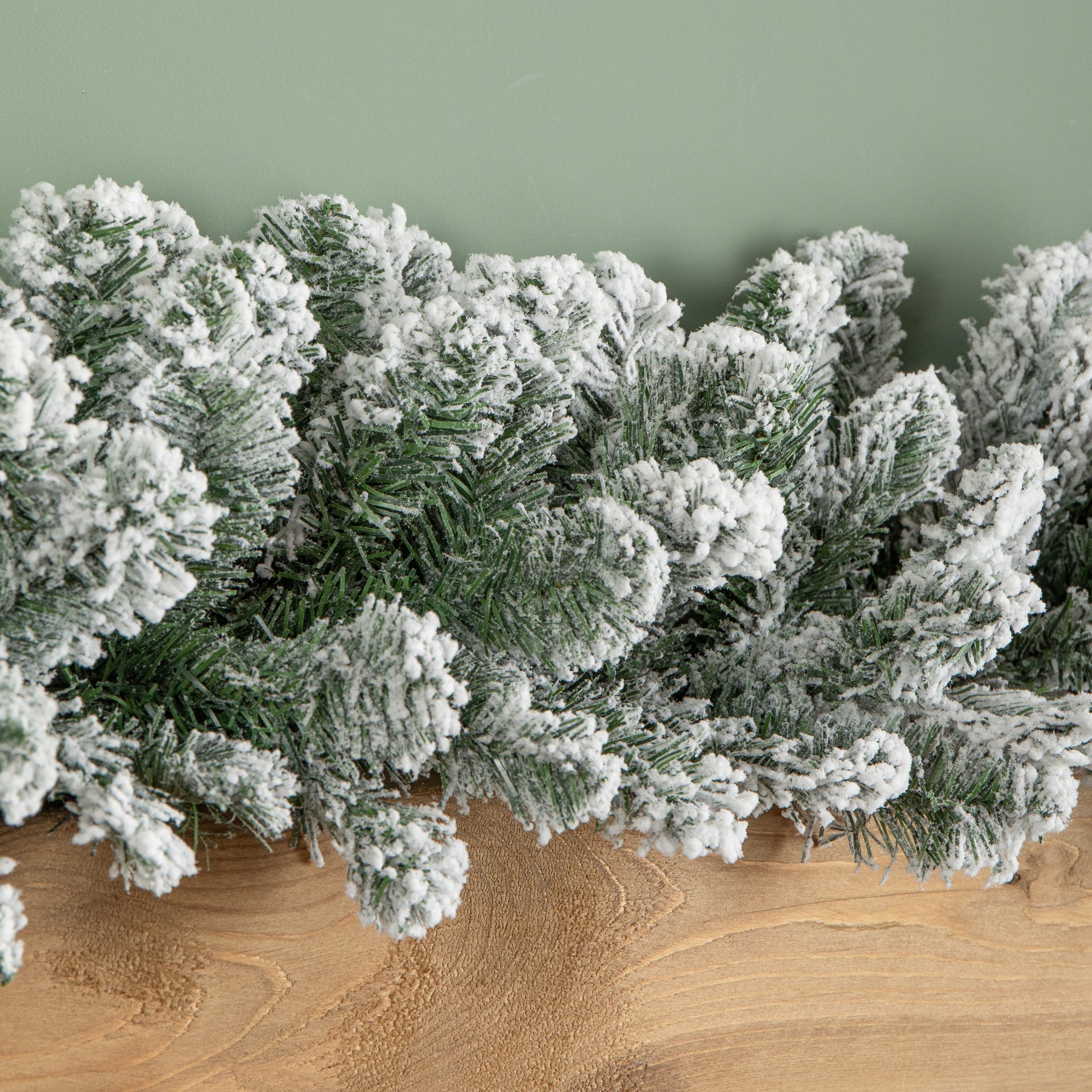 Measuring 2.7 metres (9ft) in length, this garland is the perfect size for a variety of applications, from hanging across doorways to framing your Christmas tree or lining the centrepiece of your festive table. The rich imperial green foliage offers a deep, vibrant base, while the snowflocked finish provides a realistic, wintry effect. The delicate layers of "snow" create the perfect illusion of freshly fallen snow, adding a magical, frosty touch that enhances your holiday décor.