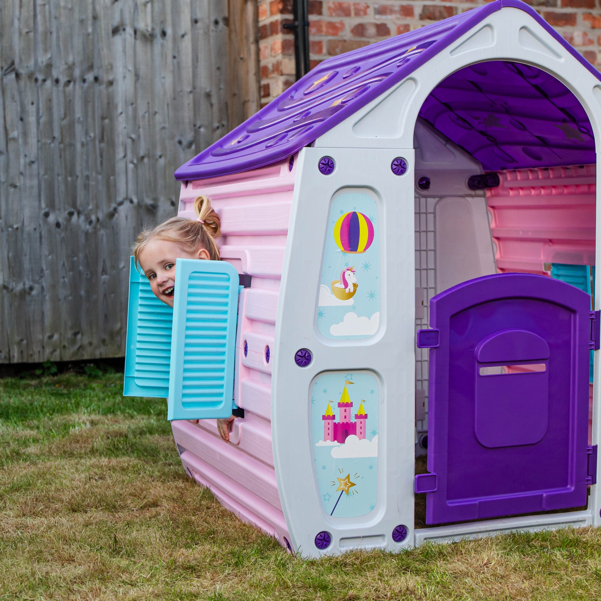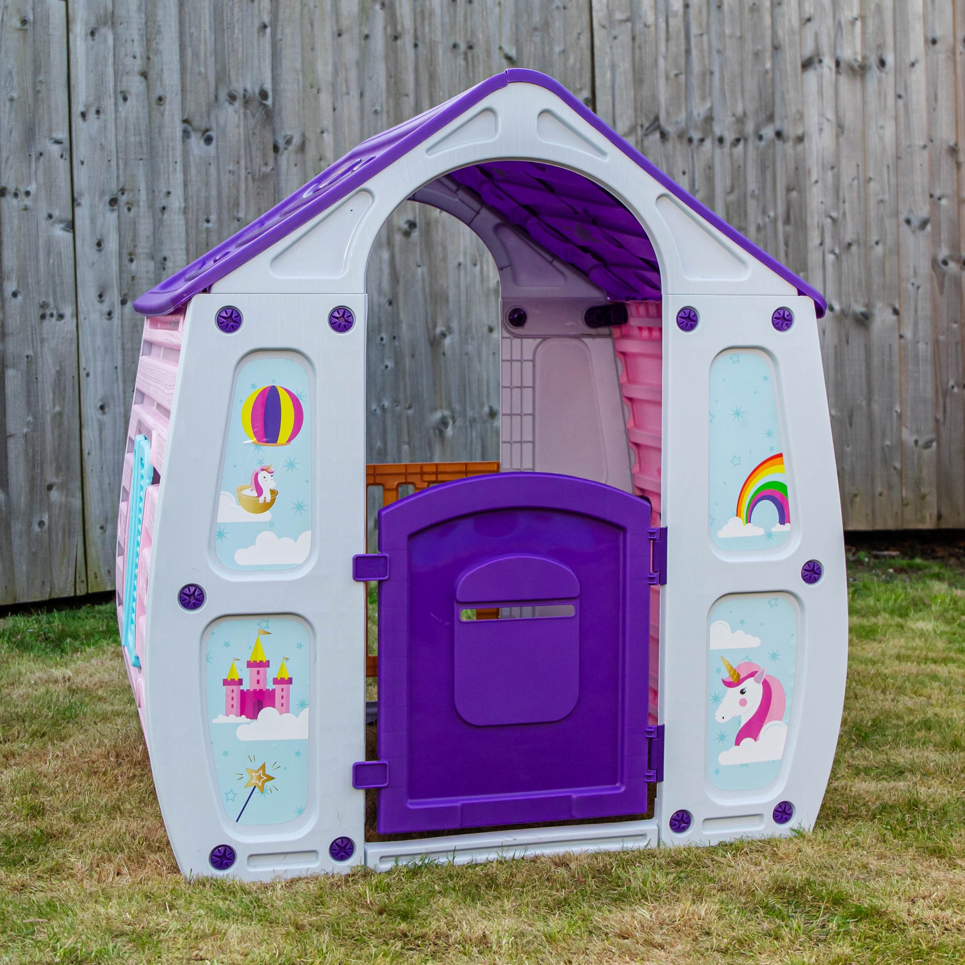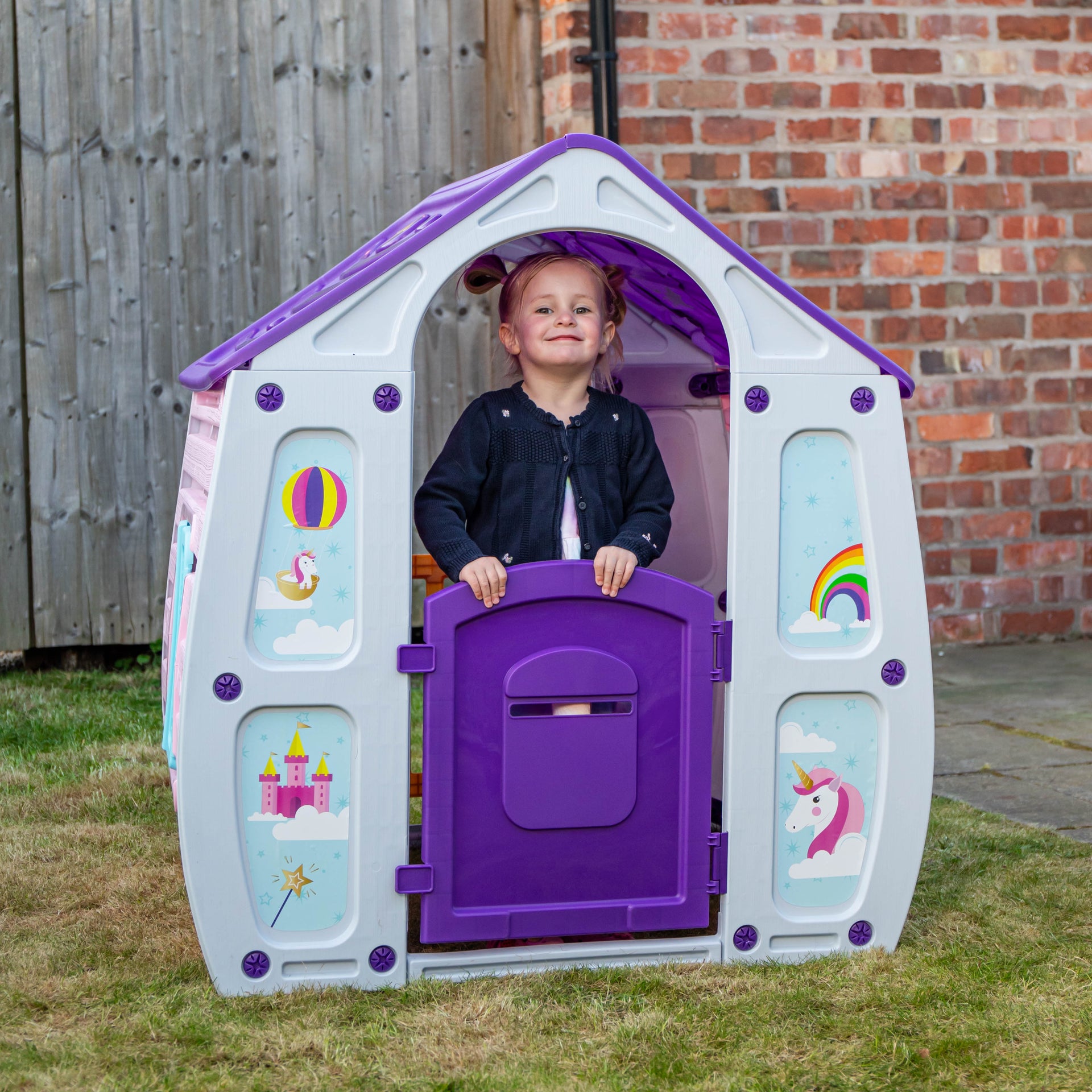 Keep the kids entertained with this Purple Unicorn Magical Playhouse. Playhouses contribute to the mental and physical development of children whilst in a safe environment and encourages them to be creative, imaginative and explore the world around them promoting cognitive skills and brain development. Having a playhouse can be enjoyed all year round whether you place this in the back garden to enjoy outdoor time or have this indoors for when it's raining.