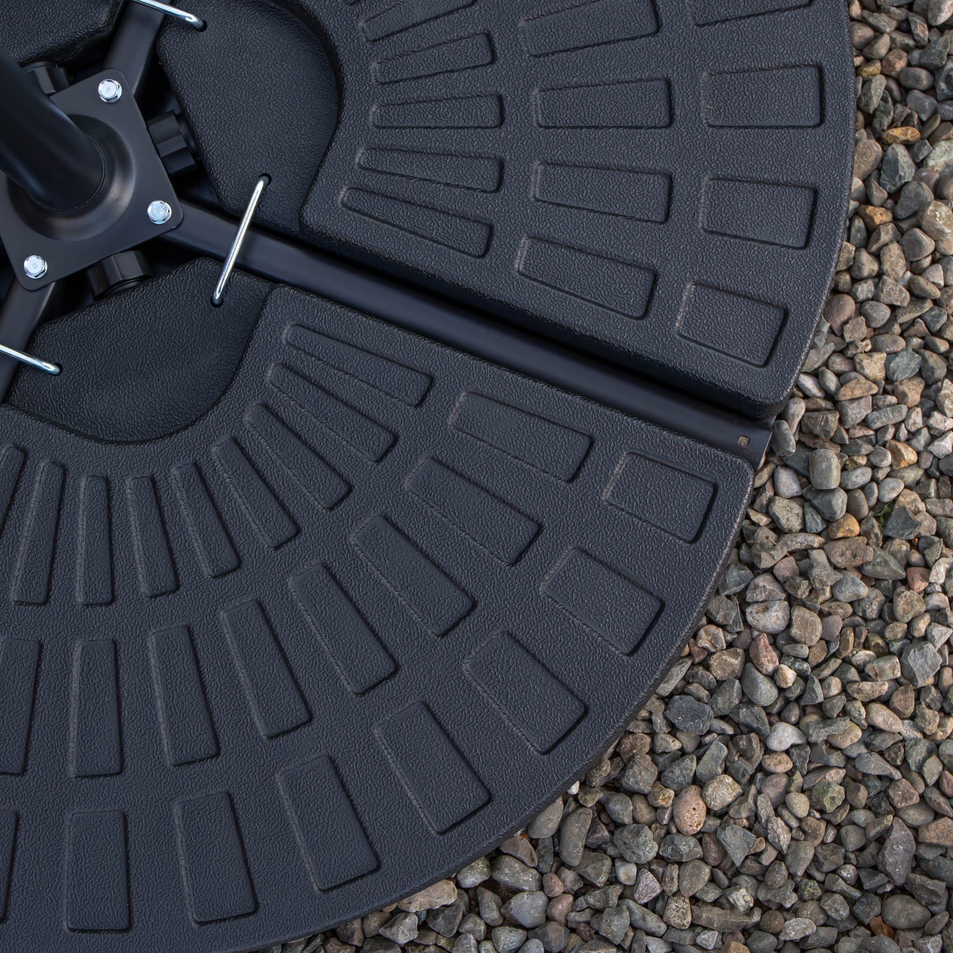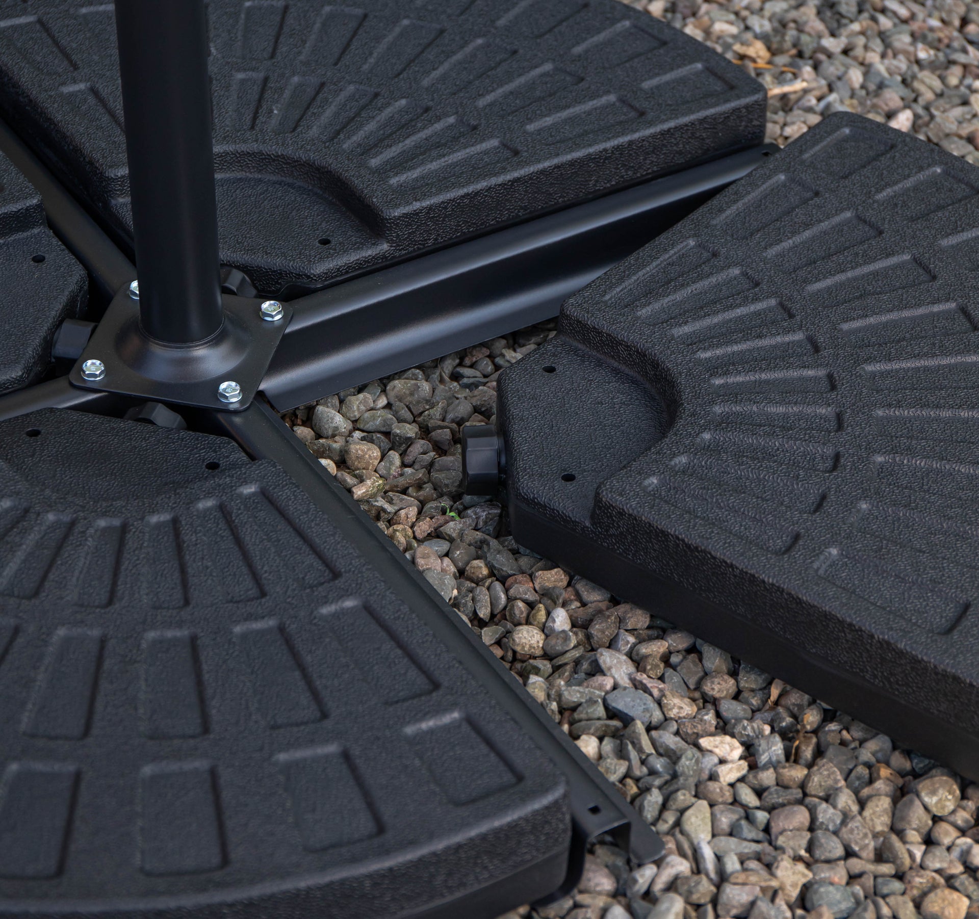The base sections are suitable for use with most freestanding, banana, leaning and cantilever parasols, garden awnings and gazebos needing weights. The sectional style parasol base is perfect for any canopy outdoor furniture that requires a sun shade base.