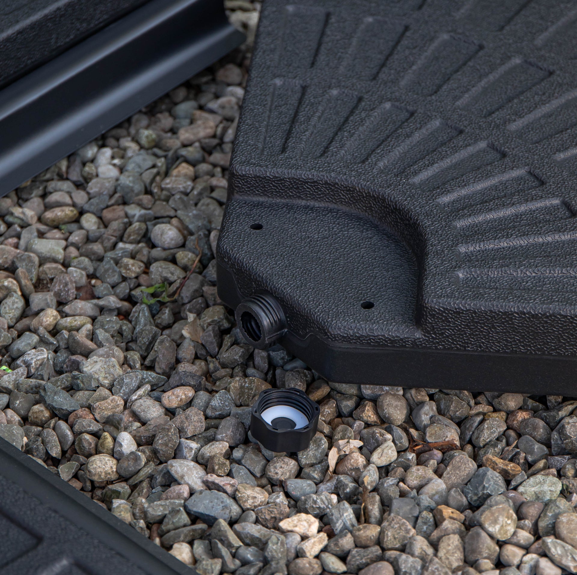 The cantilever parasol and gazebo weights set of 4 offers heavy duty support for most needs. The 4 pieces are fillable with sand or water that provides an easy to empty system when needing to move. For best results when filling the parasol cantilever parasol base use a mixture of sand or water.