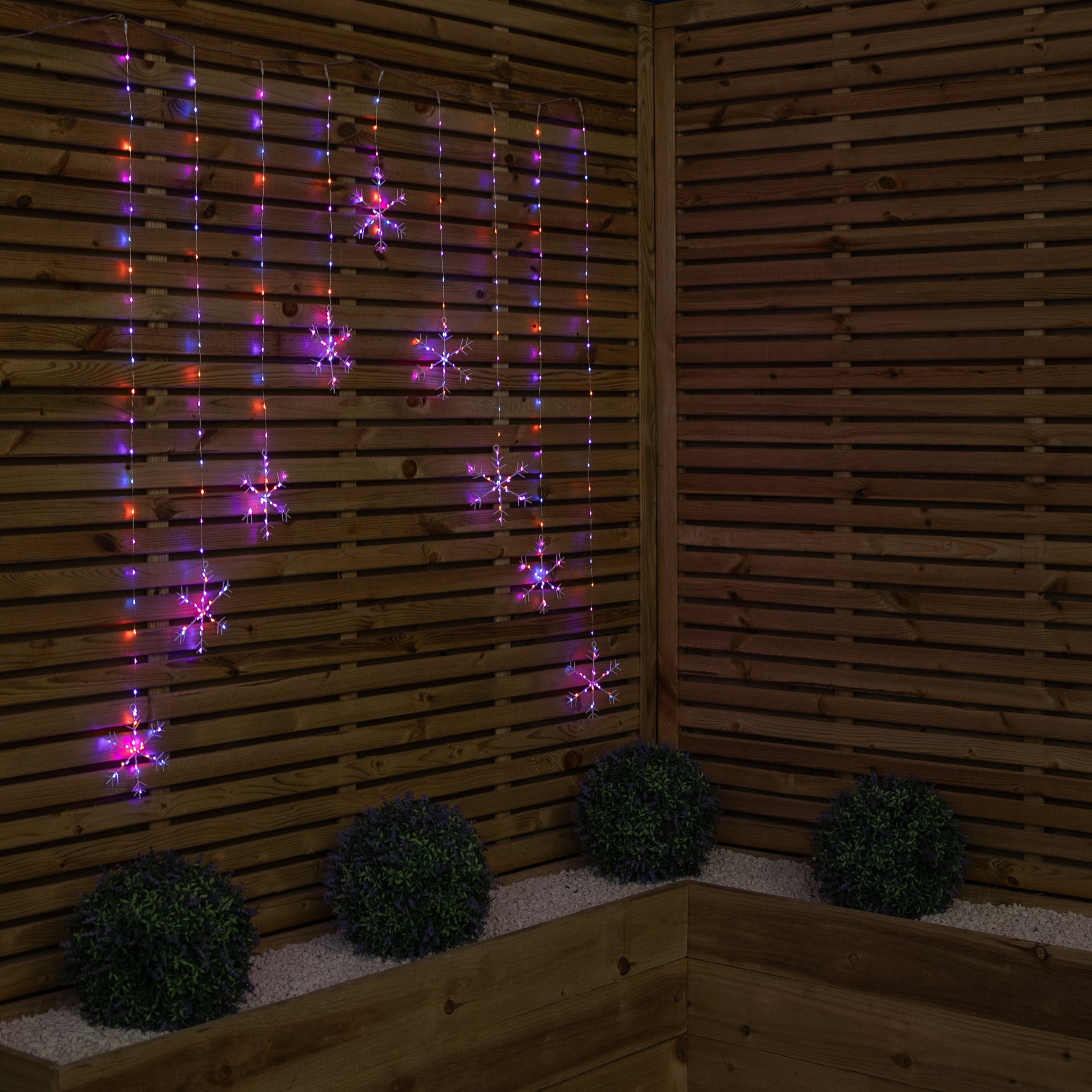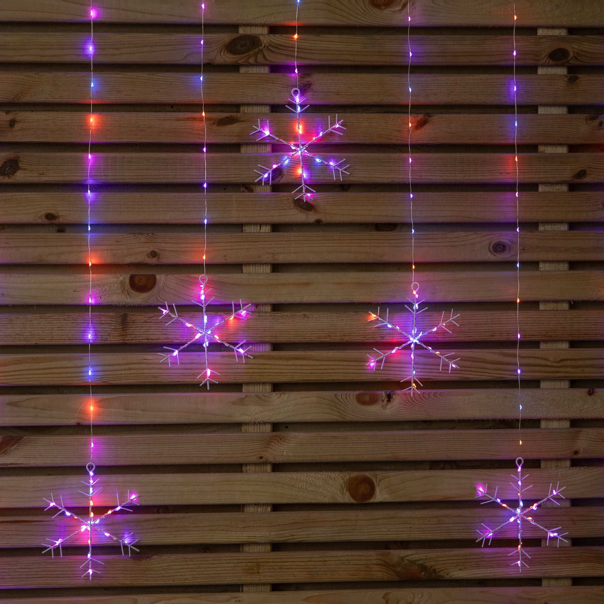 1.2m x 1.2m Light up Snowflake Pin Wire Christmas Curtain Lights with 339 Rainbow LEDs