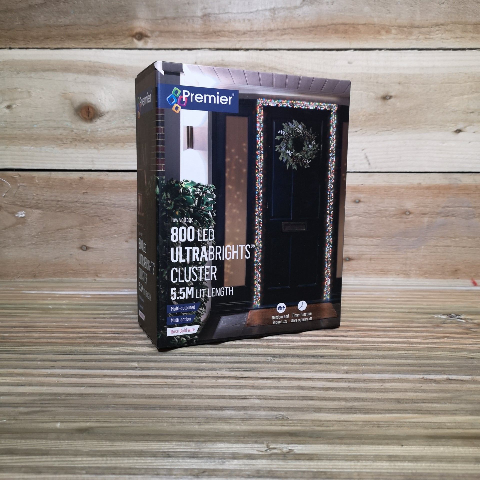 - 800 LED 5.5m Premier Christmas Indoor Outdoor Multifunction Wire Cluster Lights with Timer in Multicoloured
