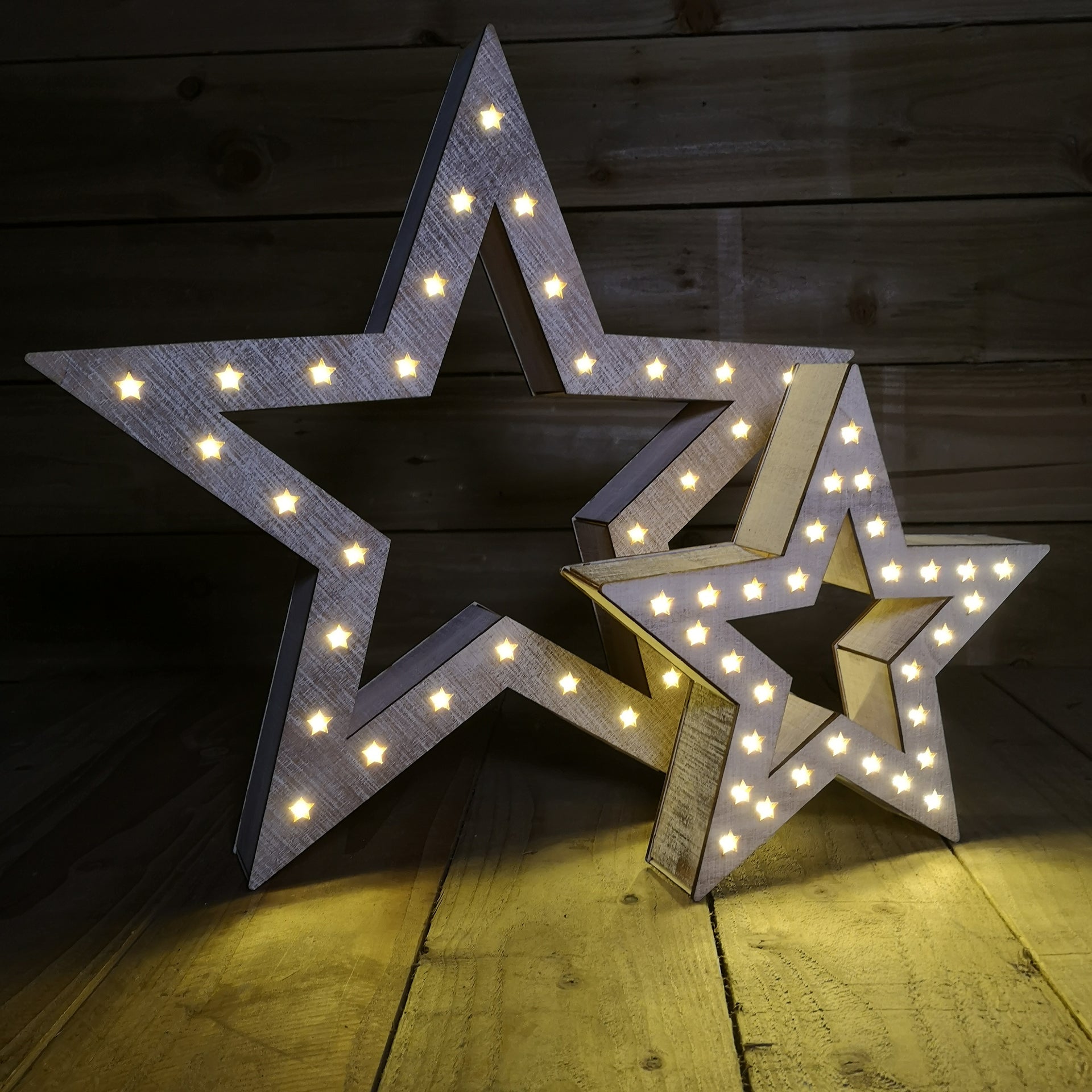 - Set of 2 Wooden Battery Operated Stars Christmas Decoration with 60 Warm White LEDs