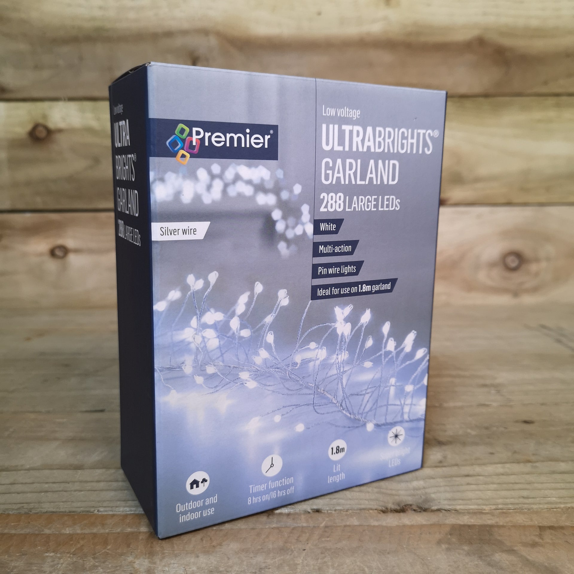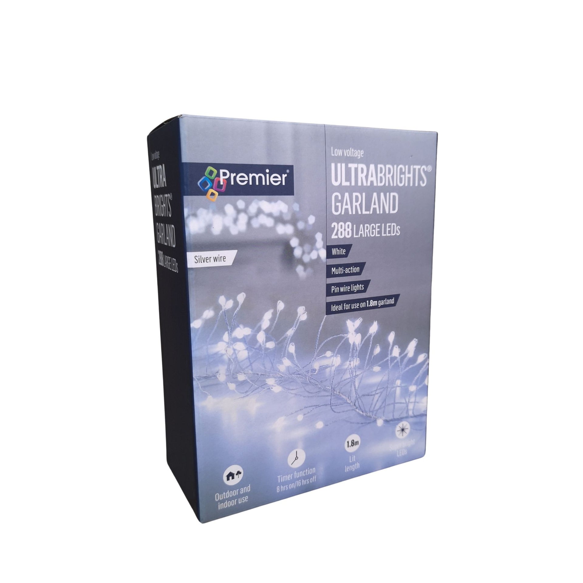 - 288 LED 1.8m Premier Outdoor Multi Function Christmas Garland Wire Lights in Cool White