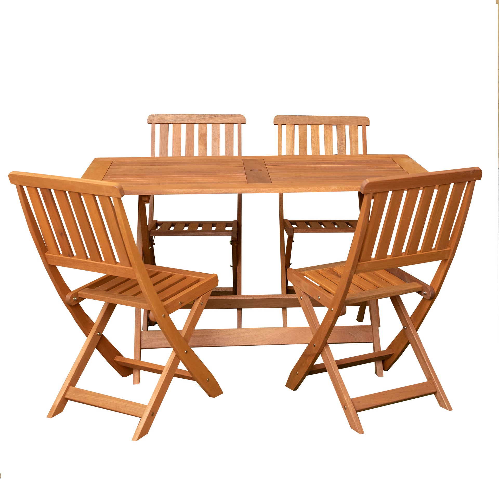- Outdoor 4 Person Folding Rectangular Wooden Garden Dining Table Chairs Set