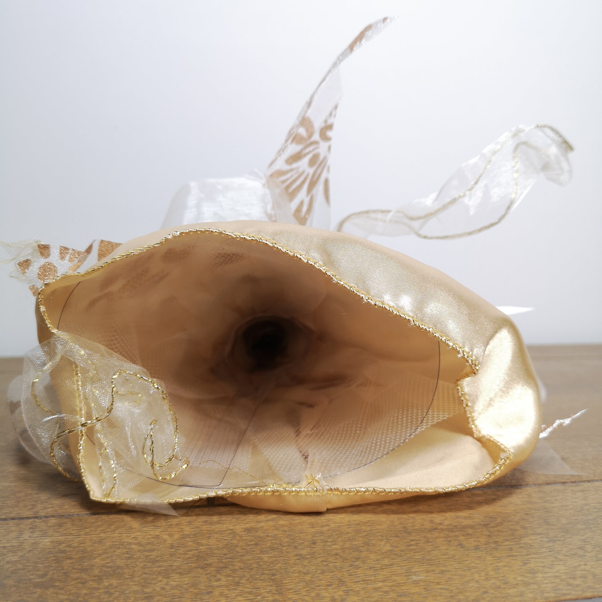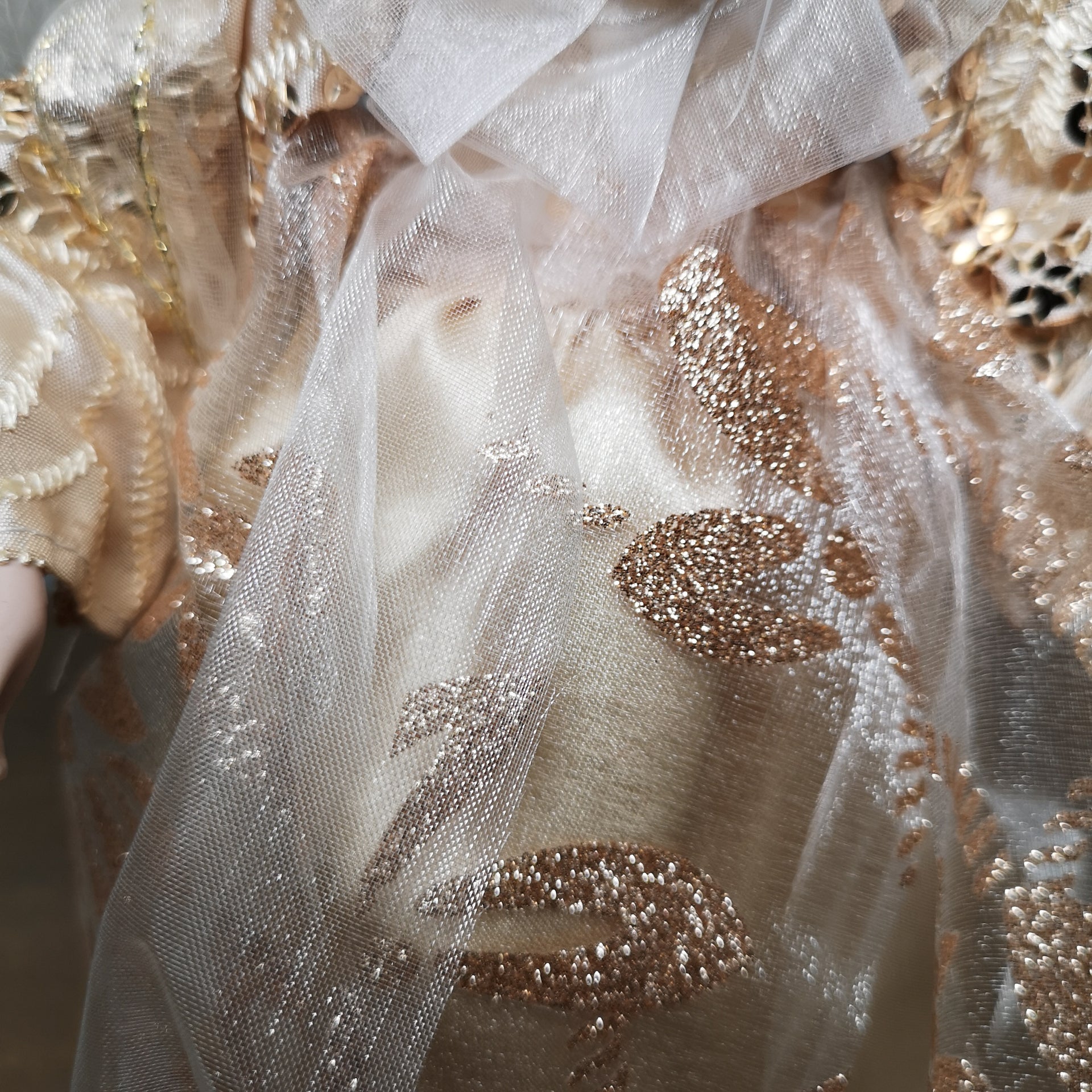 - Mixed materials have been used to create an elegantly detailed dress, feathered wings for the perfect finishing touch. Plastic inner.