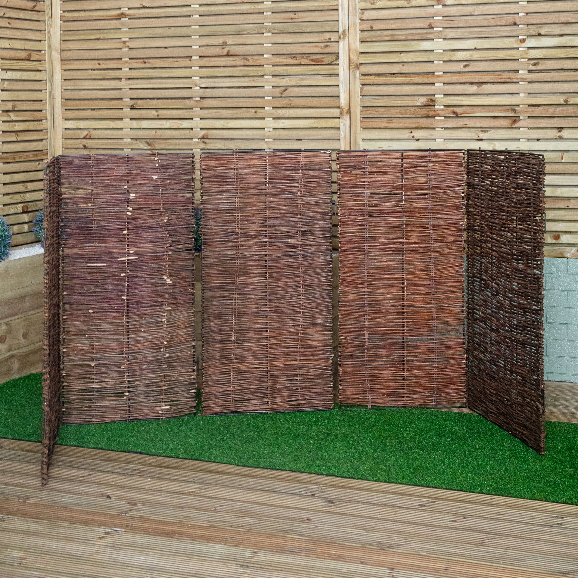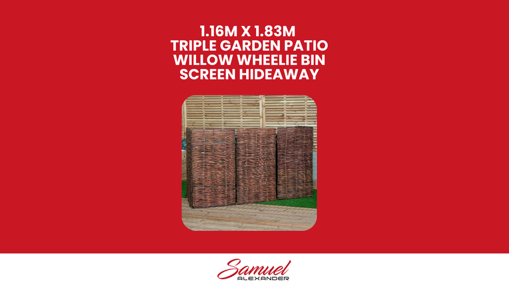Designed with convenience in mind, this willow wheelie bin cover requires no assembly. There are no tools, fixings or complicated instructions involved. Simply remove the panels from the box and hook each one into place for a quick and easy set up. With a Height: 116cm, Length: 183cm and Depth: 81cm, the Samuel Alexander Outdoor Willow Hideaway Screen is perfectly sized to accommodate a 3 x single standard wheelie bins.