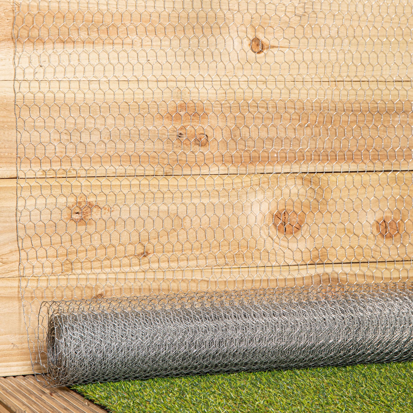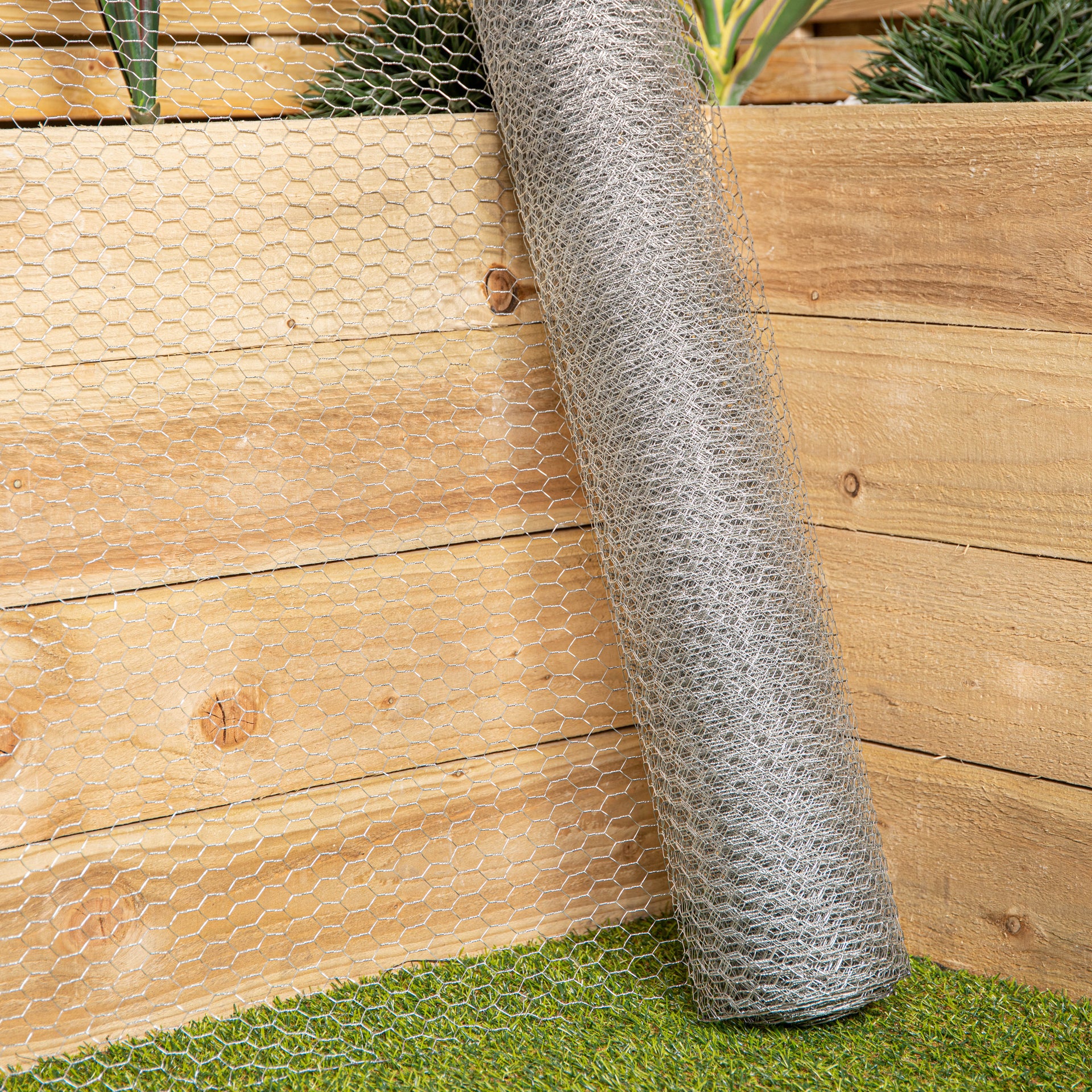Keep your poultry and animals safe and protect your garden from pests with this roll of chicken wire net fencing. Chicken wire gets its name from its original purpose, to protect chicken coops and keep poultry contained. However its use extends further beyond this and can serve as an excellent fencing material by keeping unwanted pests out of your flower beds and vegetable gardens. The hexagonal pattern adds to the balance of flexibility and strength. The design ensures that the mesh is resistant to pressure from all angles, making it both durable and versatile. Made from steel which has been galvanised to withstand harsh weather conditions. The galvanised layer provides additional protection against corrosion, making this chicken wire suitable for wet and dry environments. The netting is supplied in roll and can be cut to the size required and allows for easy storage. Each hexagonal hole on the mesh has a diameter of 13mm. Height: 90cm and 10m Wide.