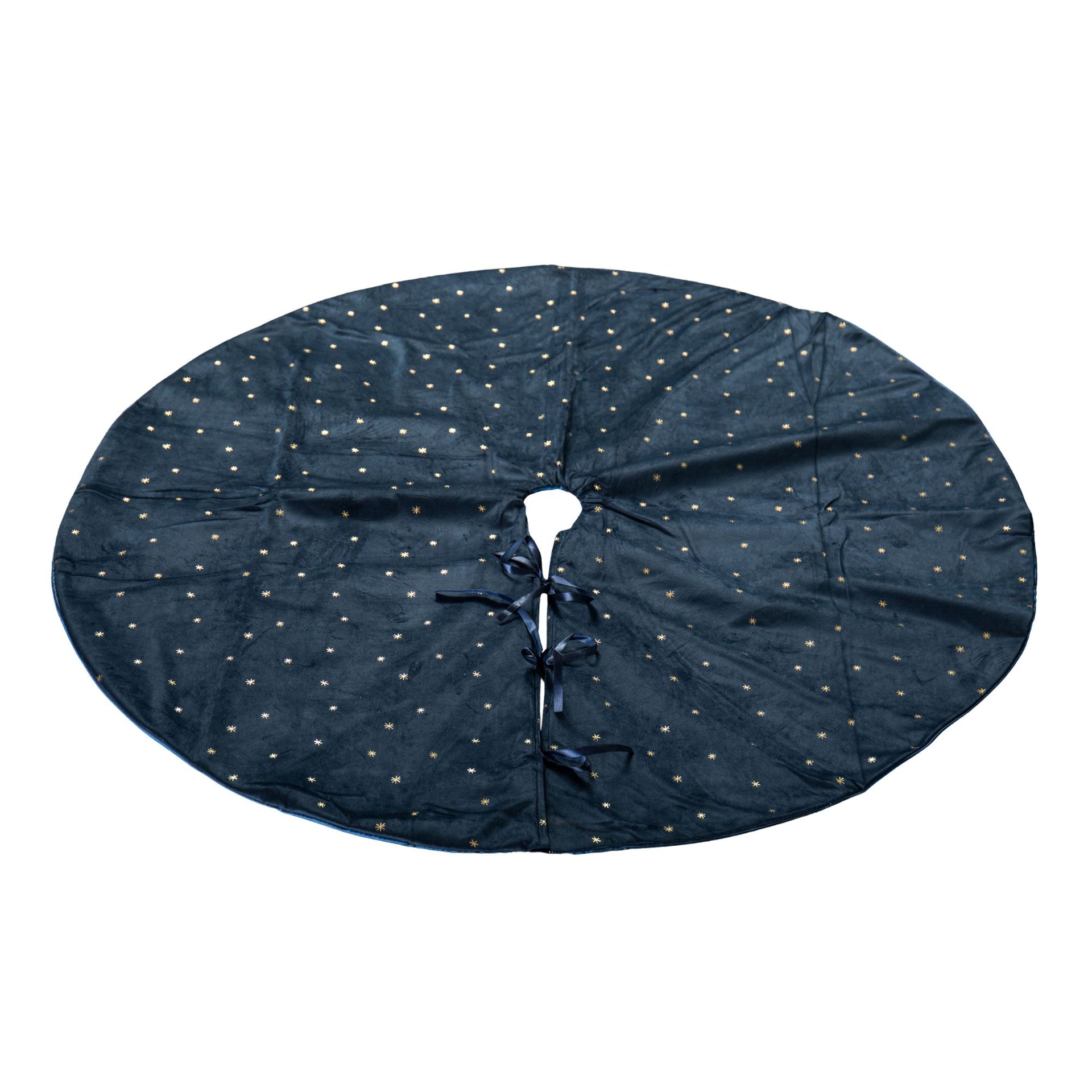 - 1.2m Soft Dark Blue Velour Christmas Tree Skirt with Gold Star Print