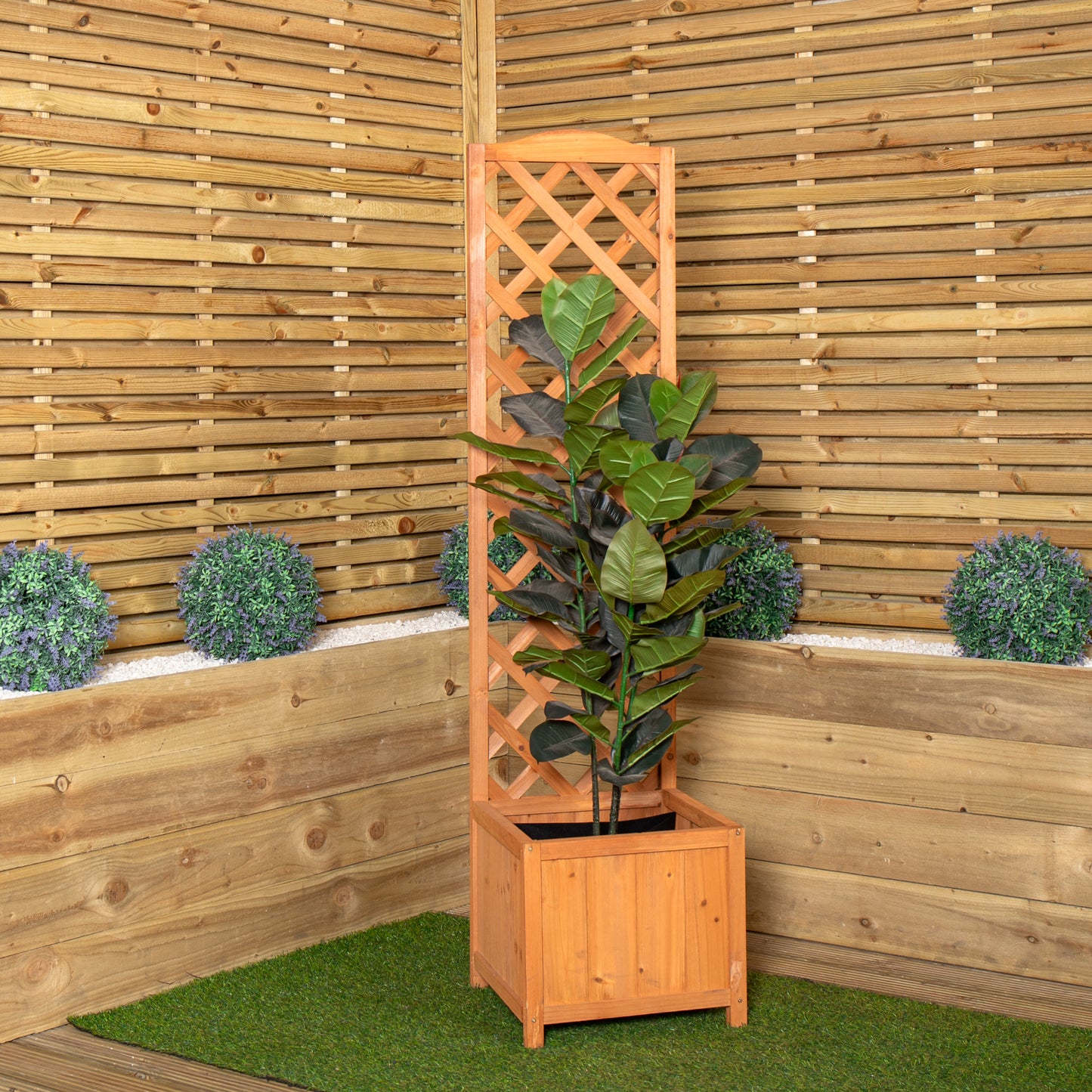 Crafted from durable natural wood, and a total height of 160cm, this elegant and vertical design enhances the aesthetic of any outdoor space while maximising growing potential. Whether you're looking to frame a wall, screen an area, or simply showcase your plants with vertical flair, this trellis planter is a beautiful and functional choice for every garden enthusiast.