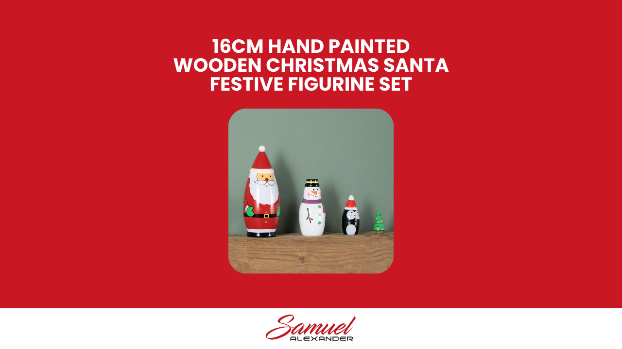 16cm Hand Painted Wooden Christmas Santa Festive Figurine Set