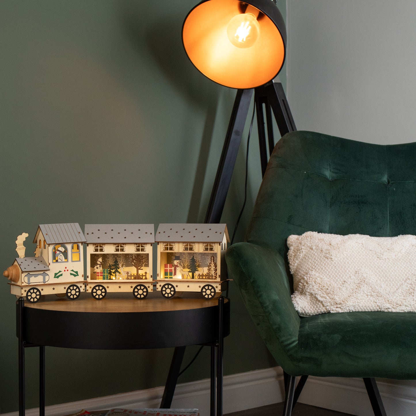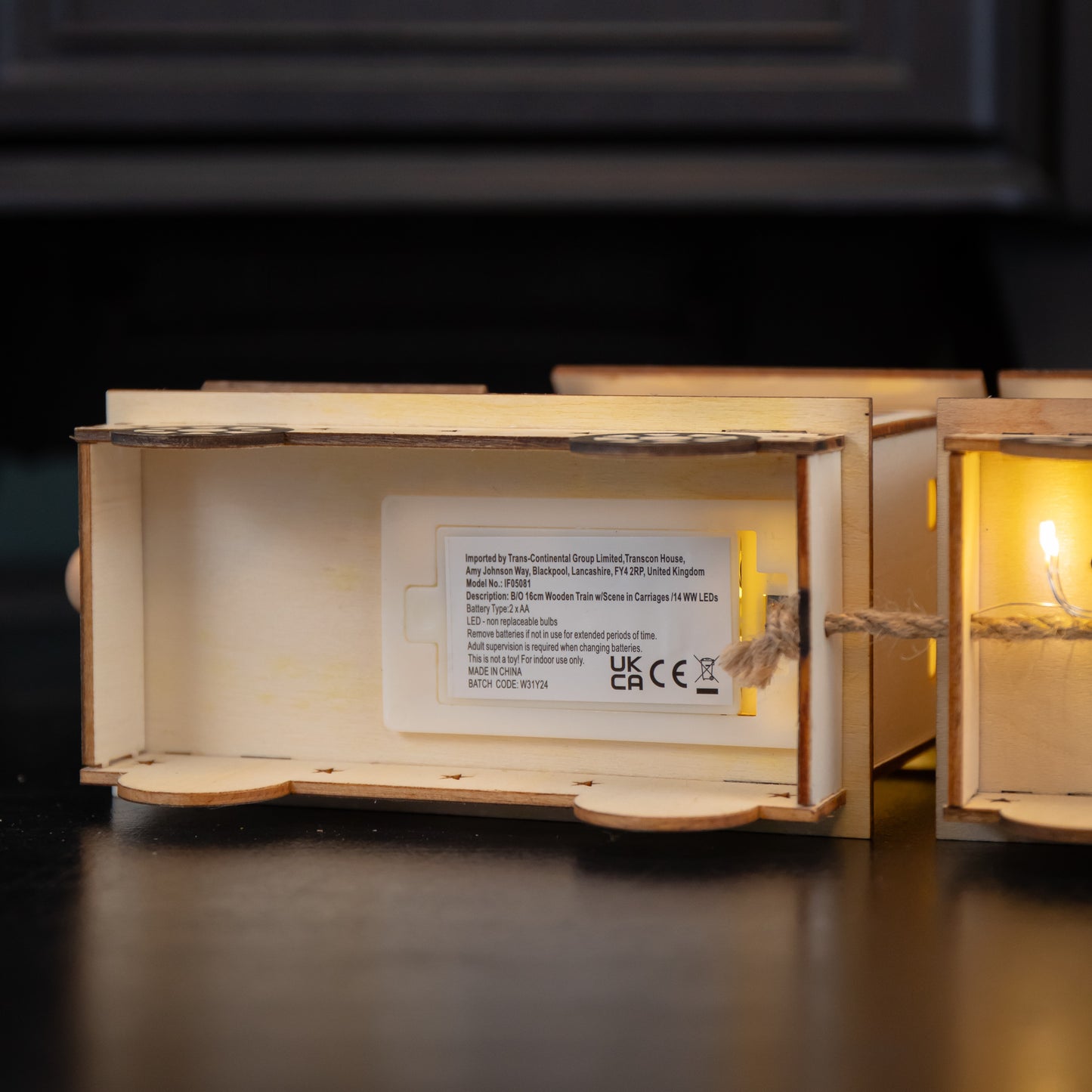 16cm LED Battery Operated Indoor Wooden Christmas Train & Carriages Scene