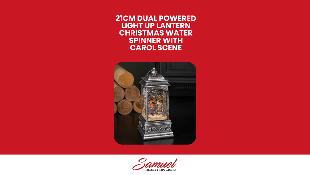 Bring a touch of nostalgic festive charm to your home with this 21cm Light Up Lantern Water Spinner with Christmas Carol Scene. Designed with a beautiful rustic effect finish, this decorative piece captures the warmth and magic of a traditional Christmas.
