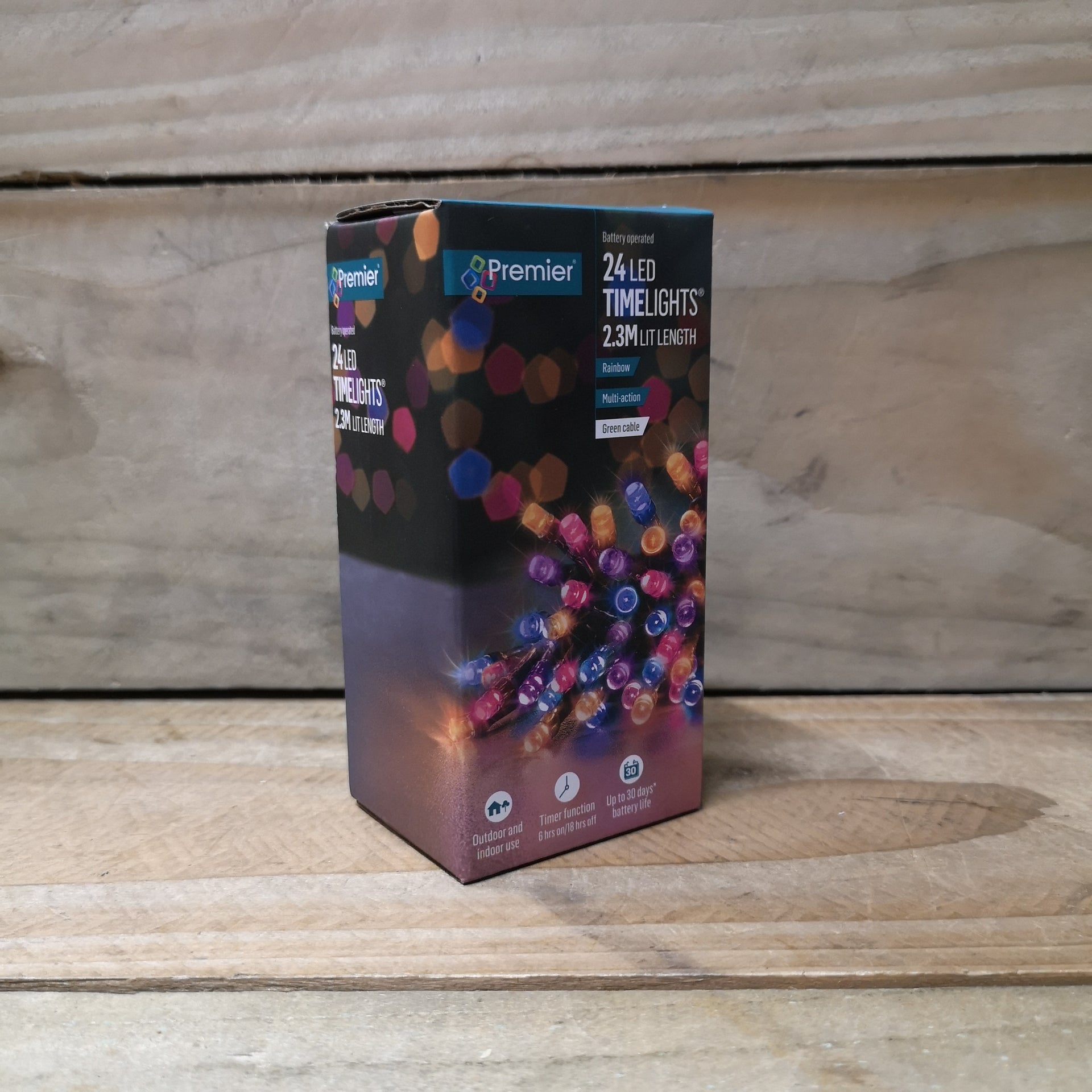 - 24 LED 2.3m Premier Christmas Indoor Outdoor Multi Function Battery Operated String Lights with Timer in Rainbow