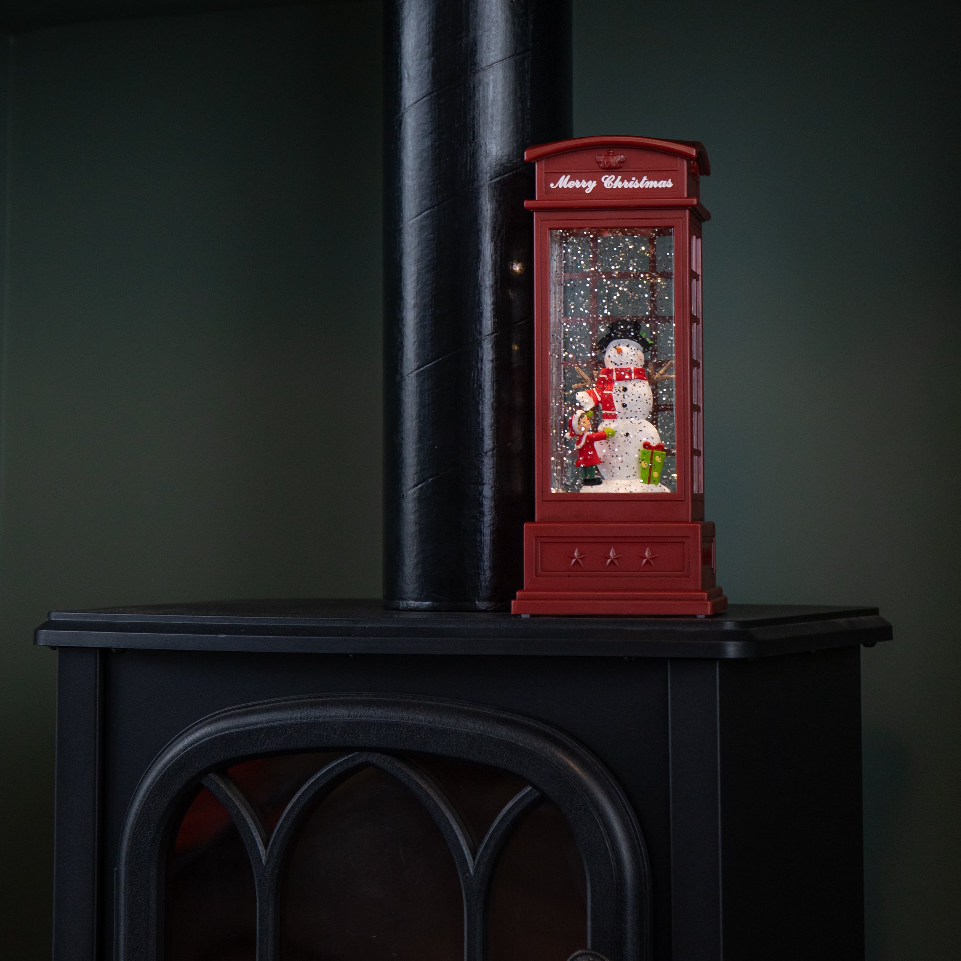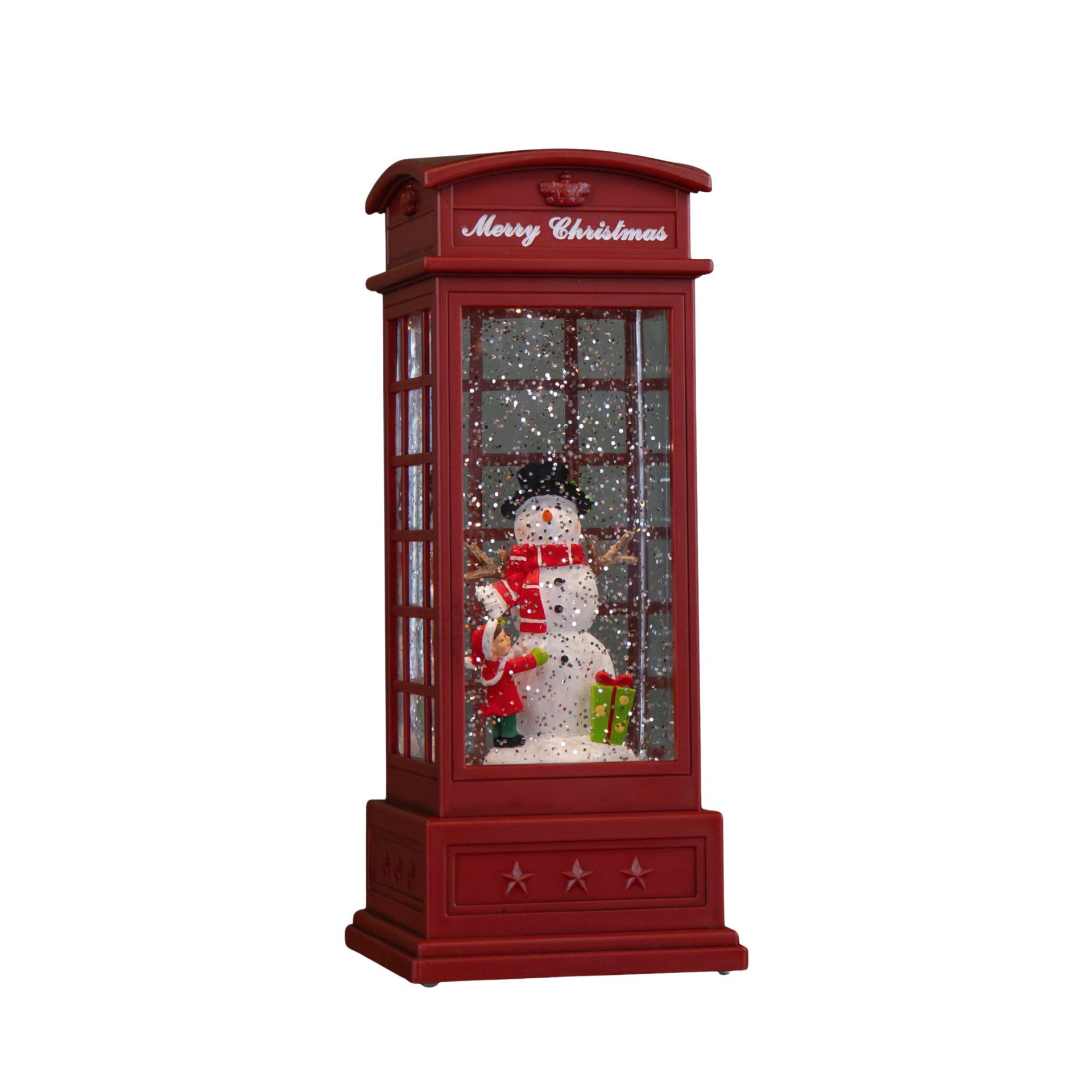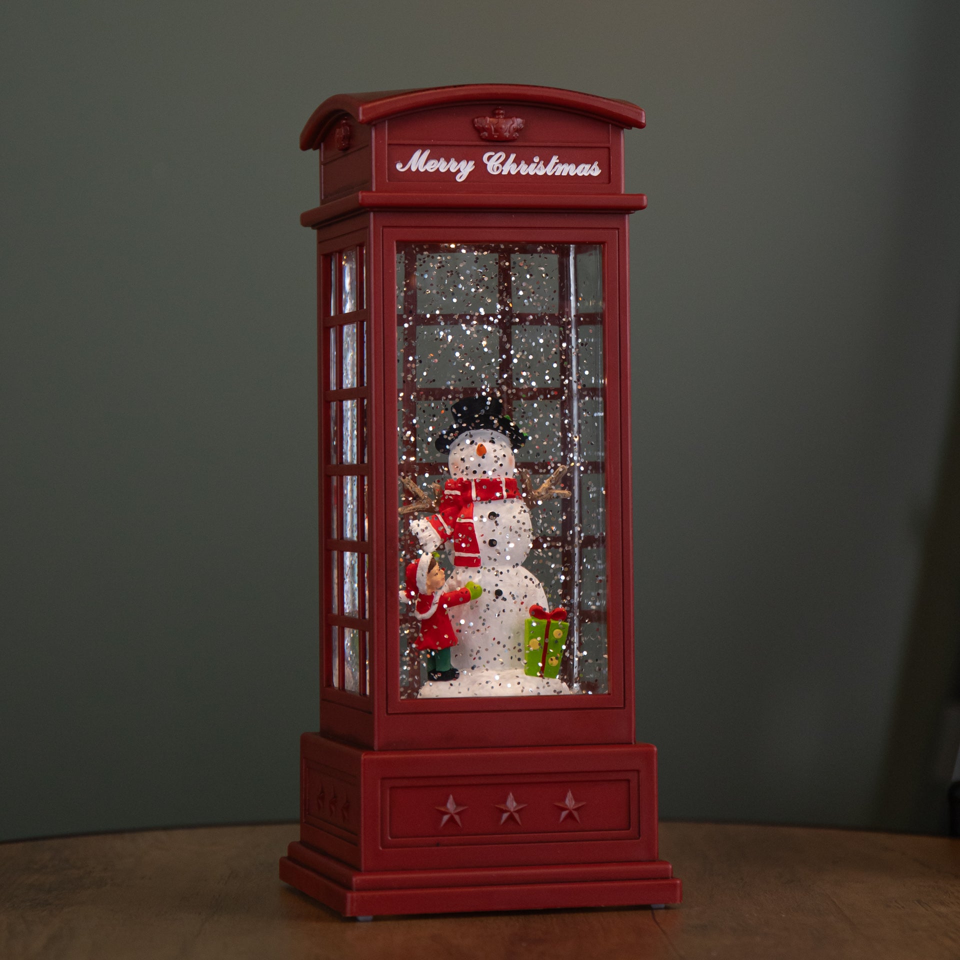 25cm Battery Operated Light up Christmas Phone Box Water Spinner with Snowman Scene & LEDs