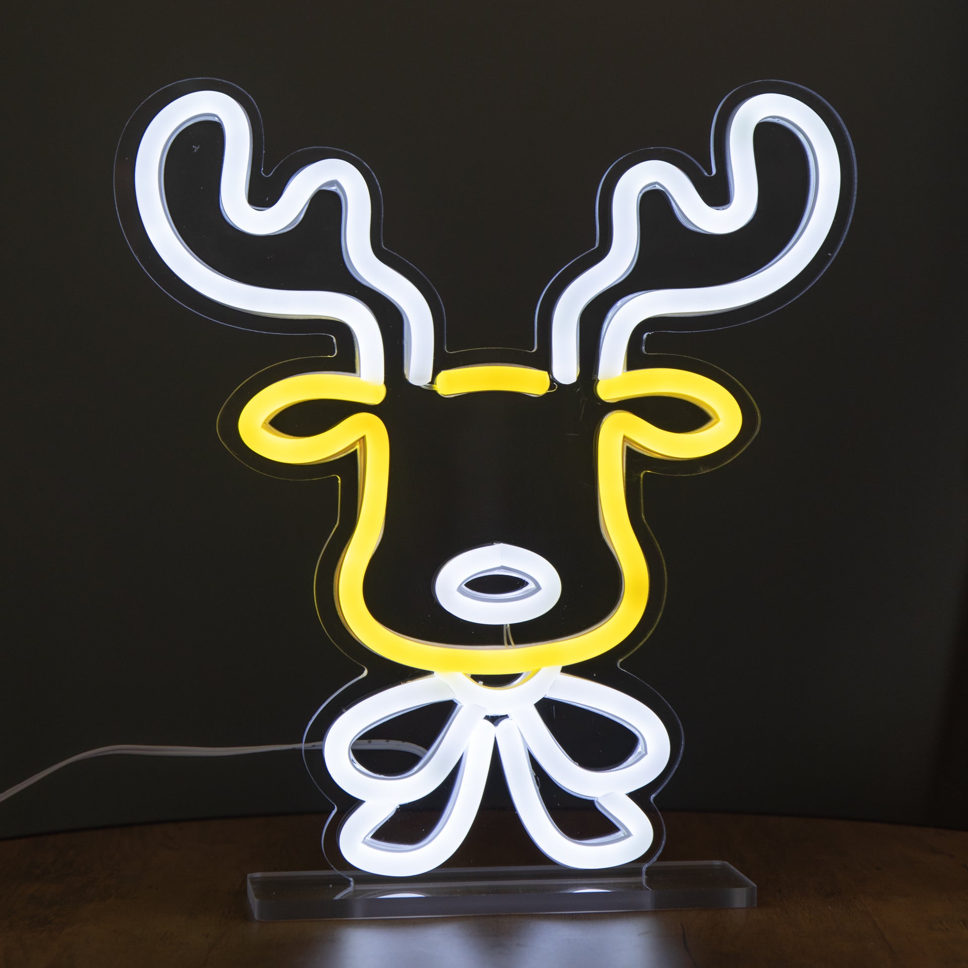 25cm Light up Christmas Reindeer Face Table Top Neon Sign