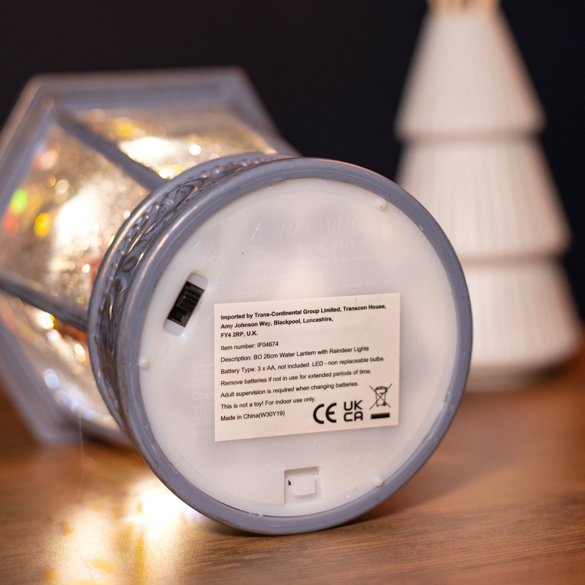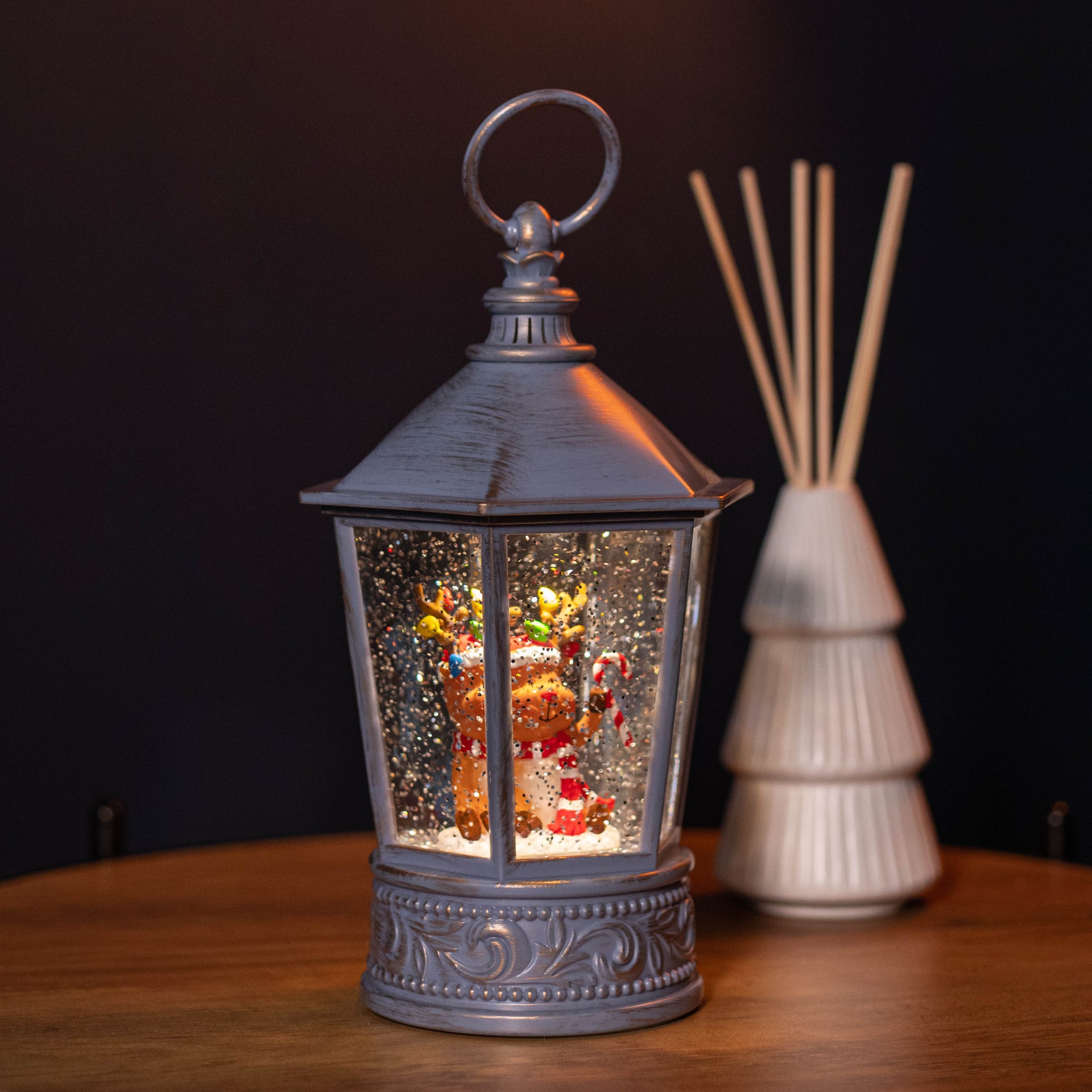 26cm Snowtime Dual Power LED Christmas Glitter Water Spinner Blue Lantern Cute Reindeer Scene