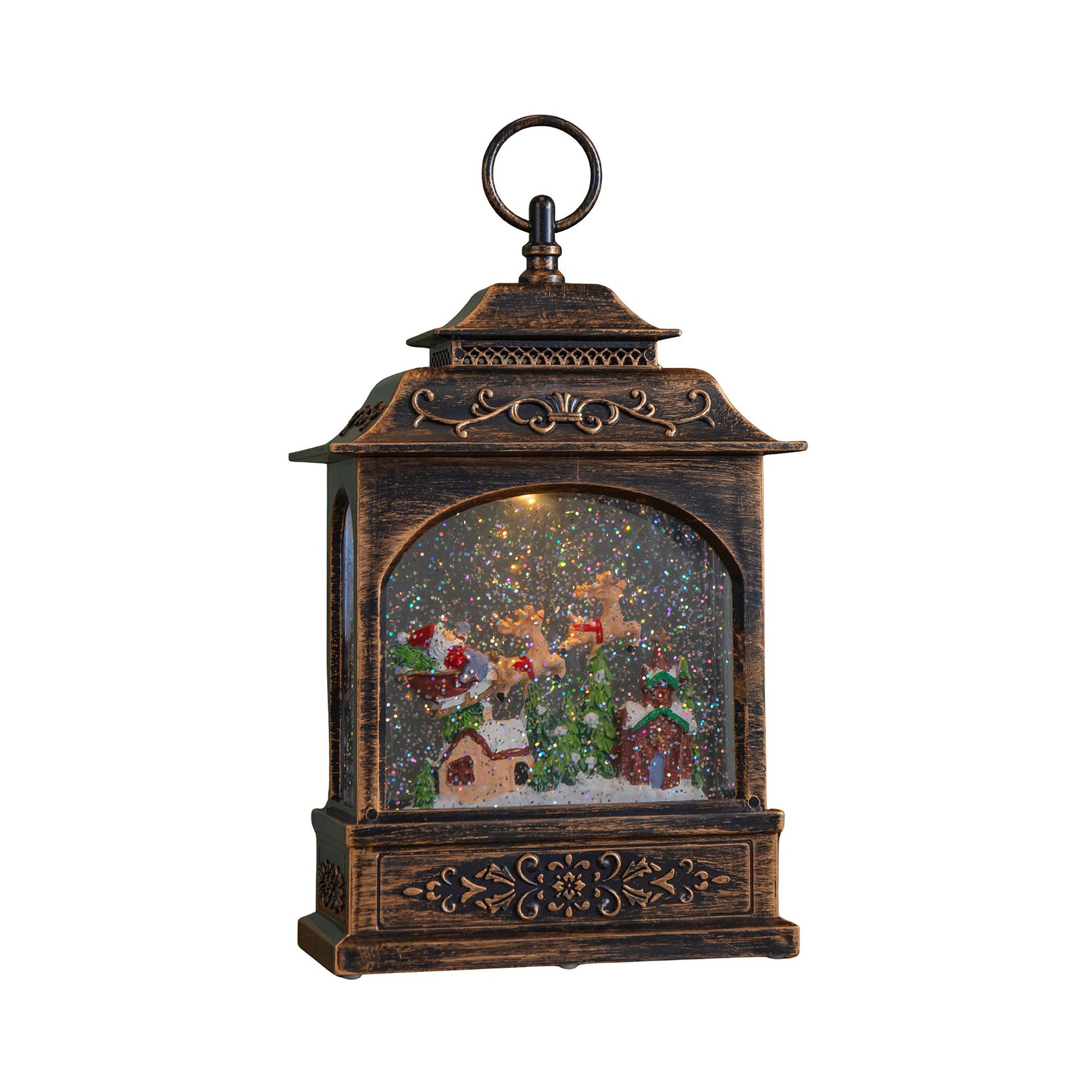 - 28cm Bronze Light up Christmas Santa Water Spinner with Warm White LEDs and Timer Function