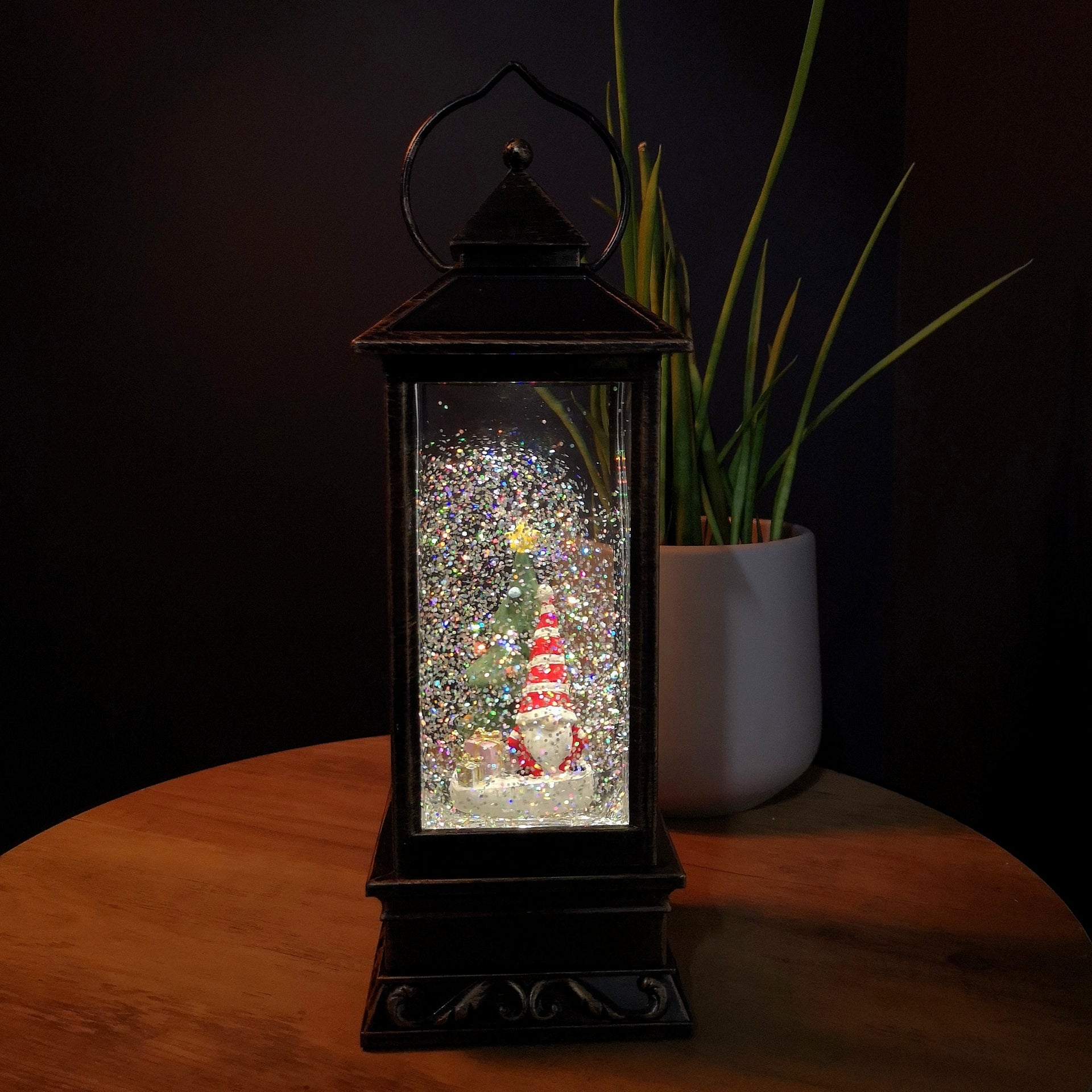 28cm LED Christmas Glitter Water Spinner Antique Lantern Snowy Gonk Scene