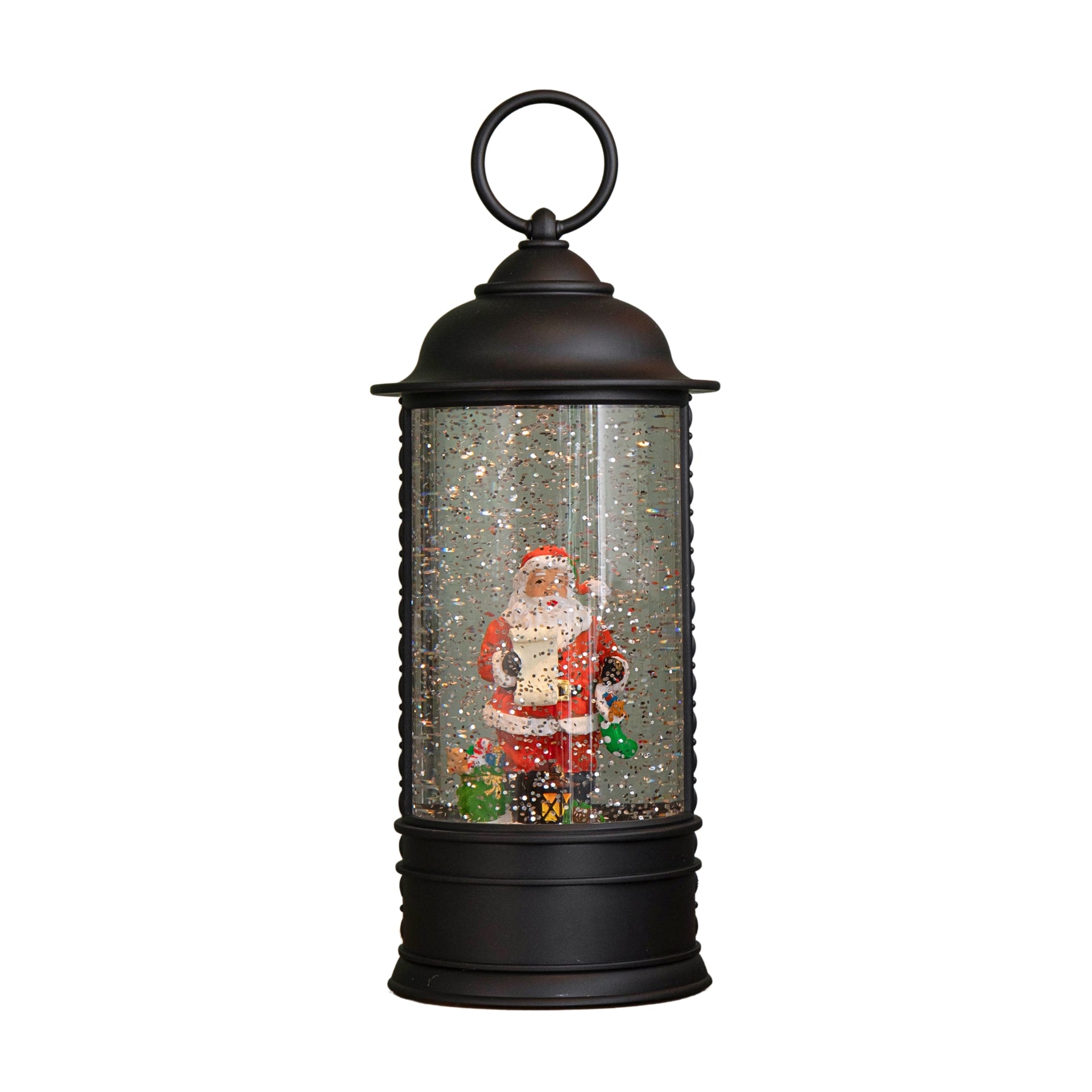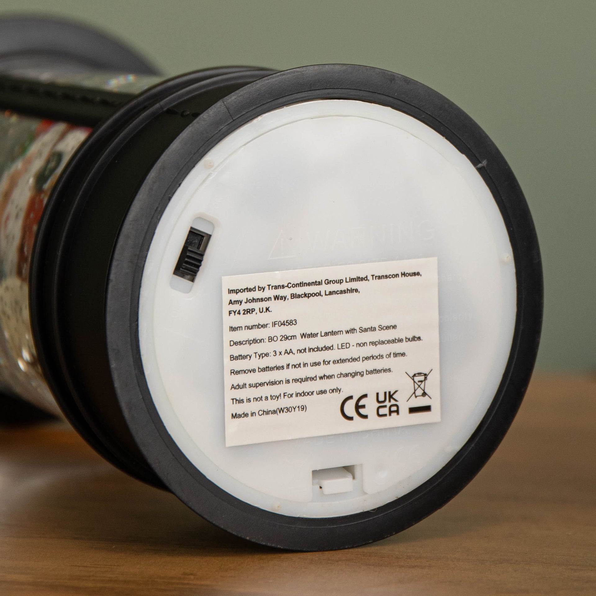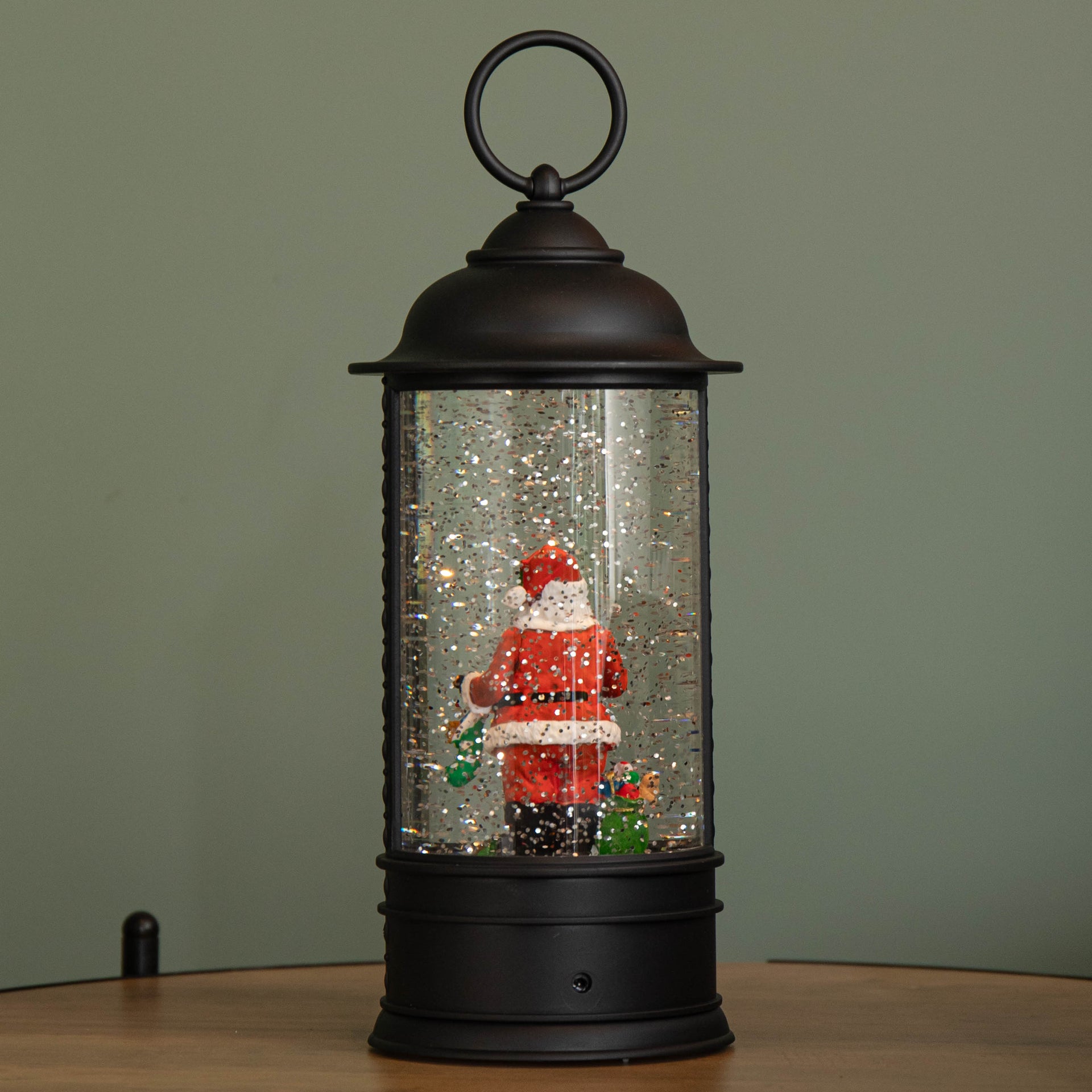 29cm Dual Power LED Christmas Glitter Water Spinner Black Lantern Santa Scene