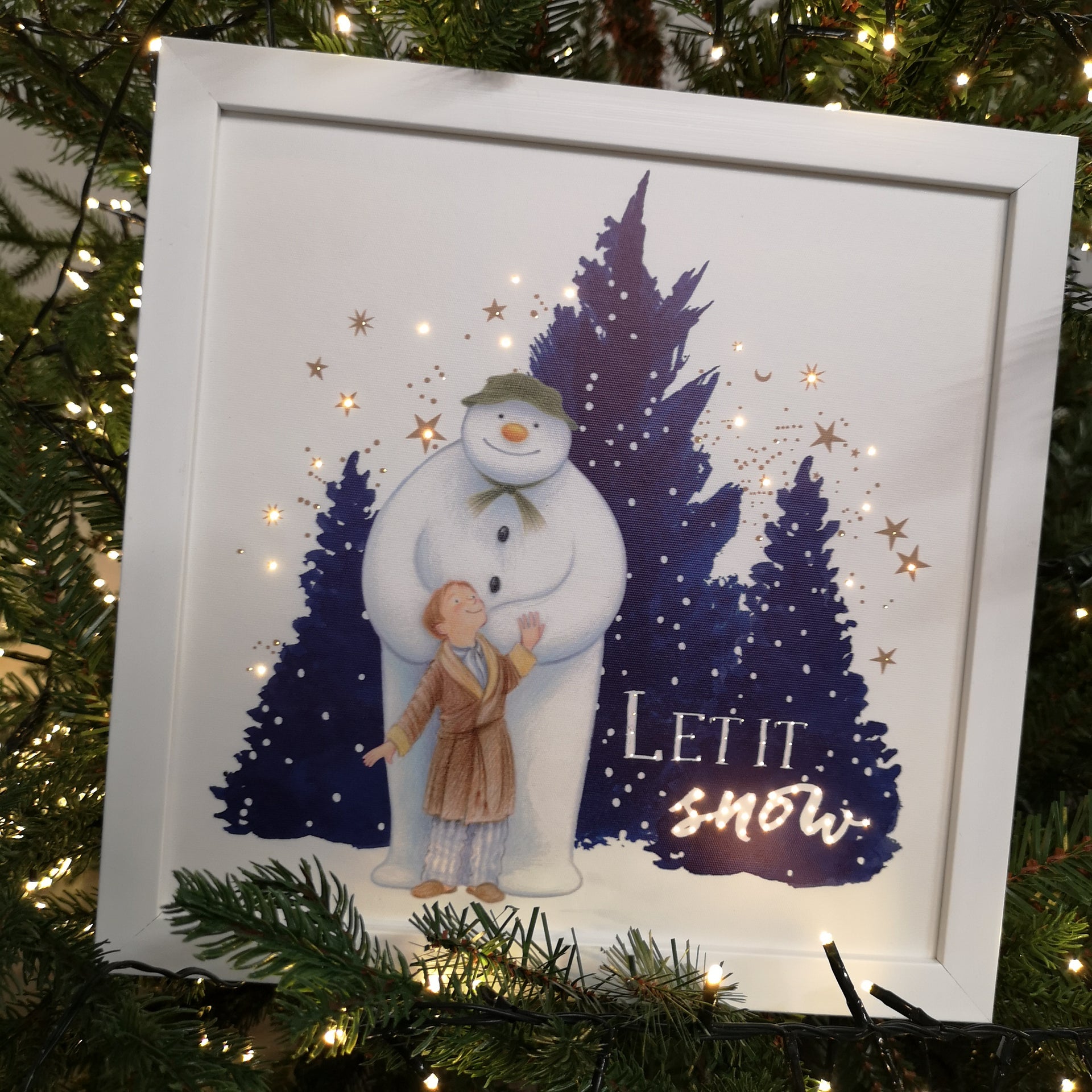 30 x 30cm Battery Operated Touch Activated Fibre Optic The Snowman™ & The Snowdog Christmas Canvas