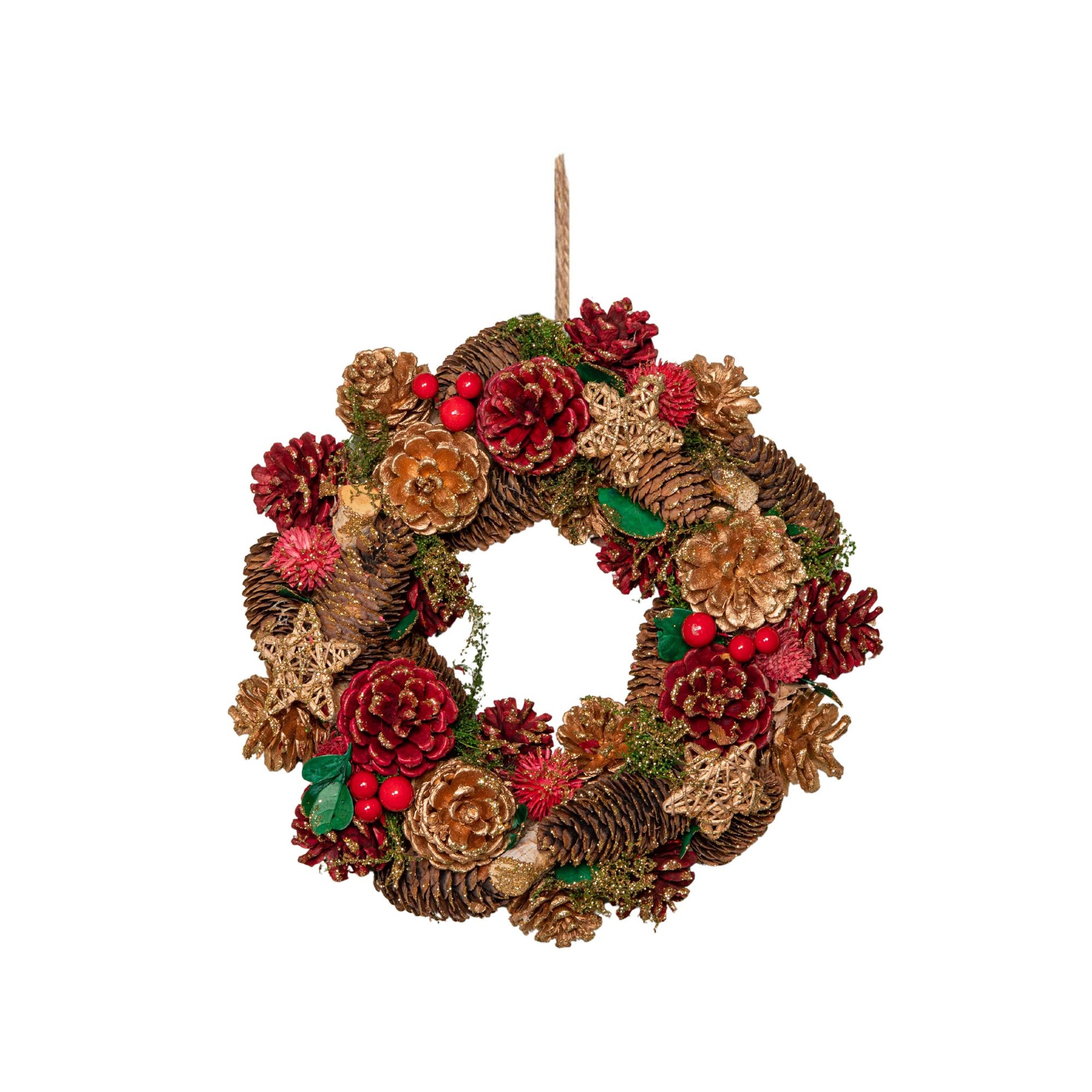 30cm Red Hanging Christmas Wreath with Red Berries and Pinecones