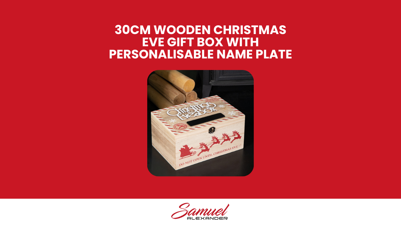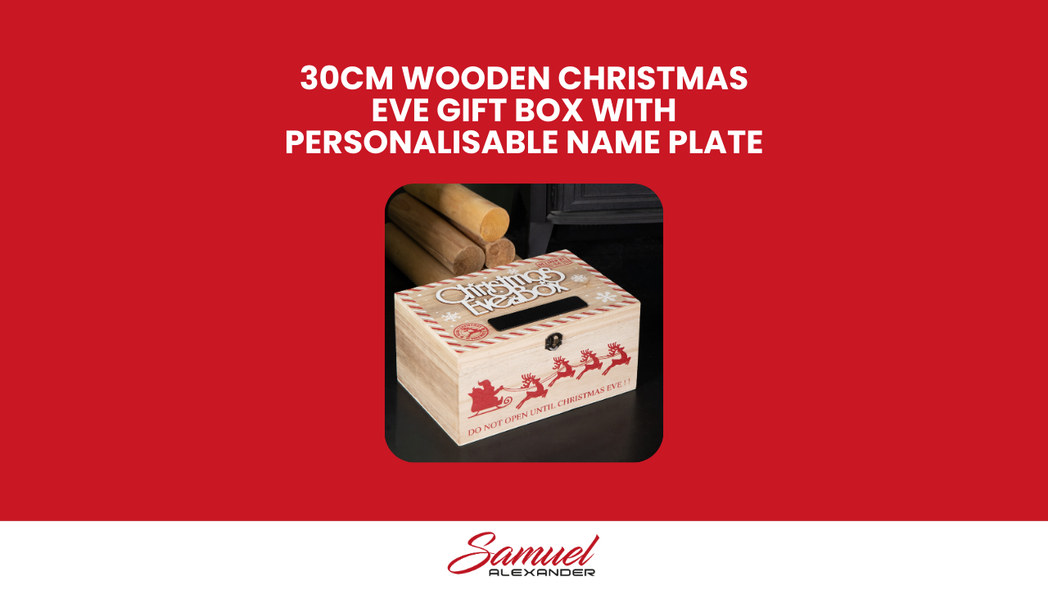 Create a magical new Christmas tradition with this 30cm Christmas Eve Wooden Gift Box with Personalised Name Plate. Designed to be filled with thoughtful treats and surprises, this charming box adds an extra layer of excitement and anticipation to Christmas Eve.