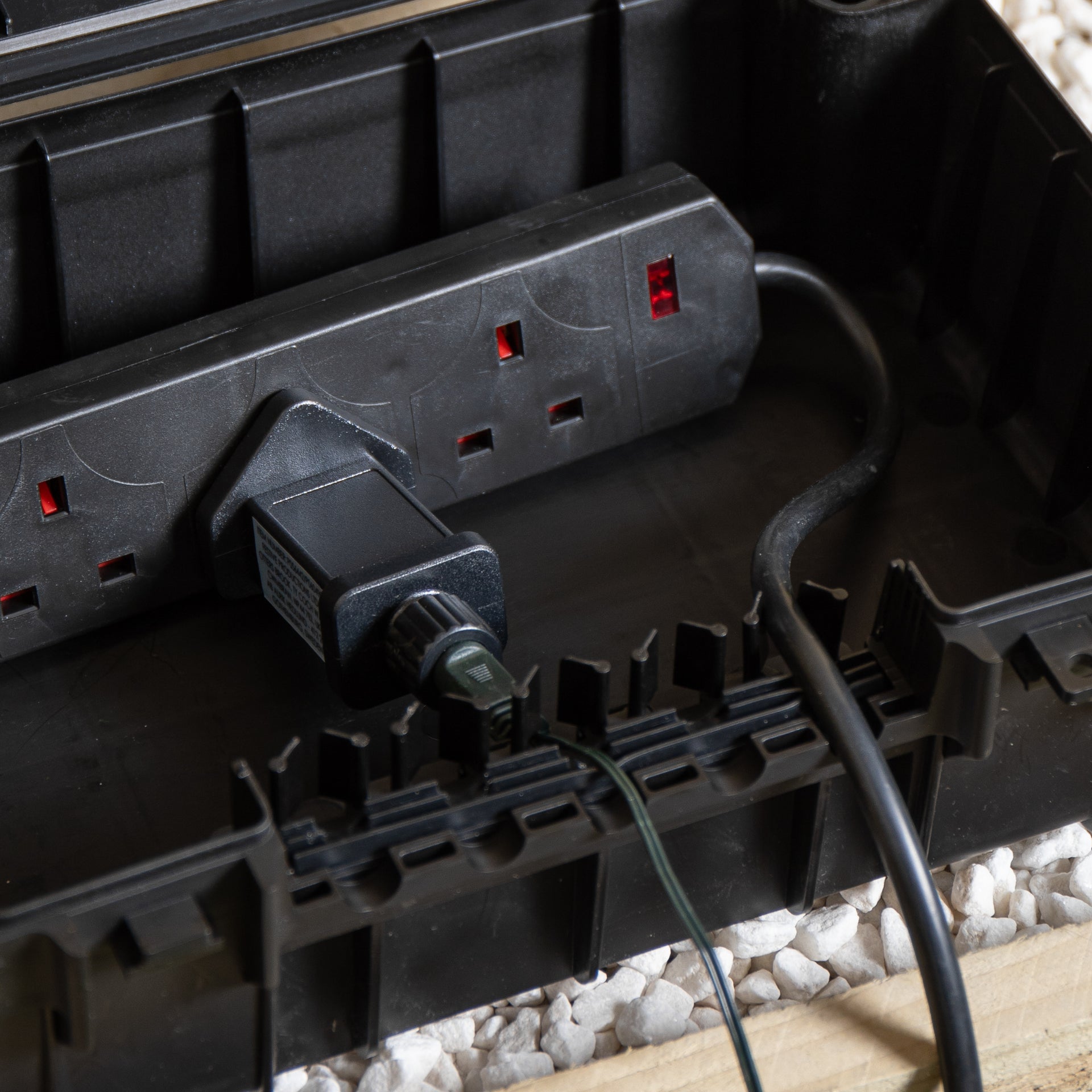 Made from strong, durable materials, this box is ideal for use in outdoor and DIY environments. It comfortably houses bulky plugs, transformers, and timers, making it perfect for use with Christmas lights, water features, or garden equipment. The interior is spacious enough to fit extension leads with up to 4 sockets, allowing you to plug in up to four items safely from a single outdoor point. It’s a temporary yet reliable solution for managing multiple plugs in areas exposed to the elements.