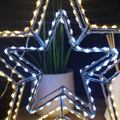 Brighten up your home this festive season with this 38cm Light up Double Dewdrop Christmas Star Decoration. Designed for both indoor and outdoor use, it offers complete flexibility, perfect for displaying on a side table, in a window, or by the front door to welcome guests with a warm Christmas glow.