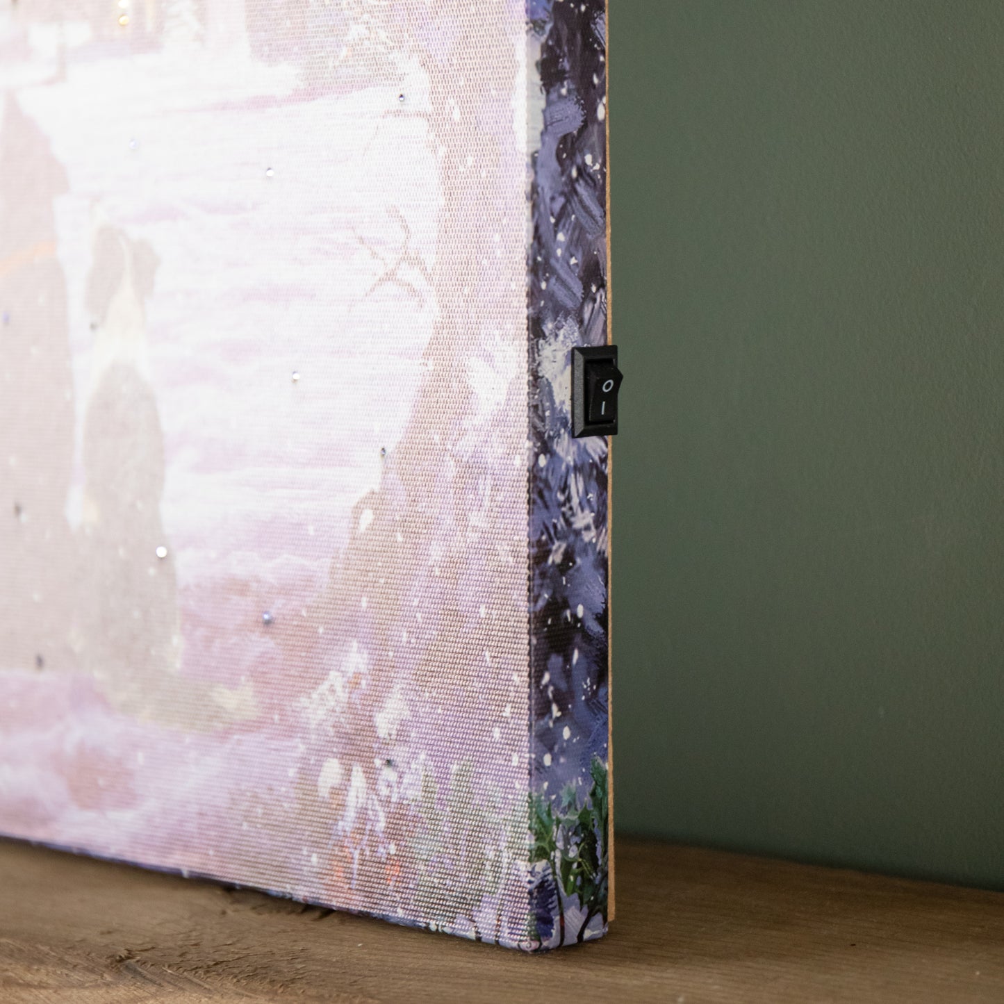 40 x 30cm Battery Operated Light up Fibre Optic Dogs Watching Santa Christmas Wall Canvas