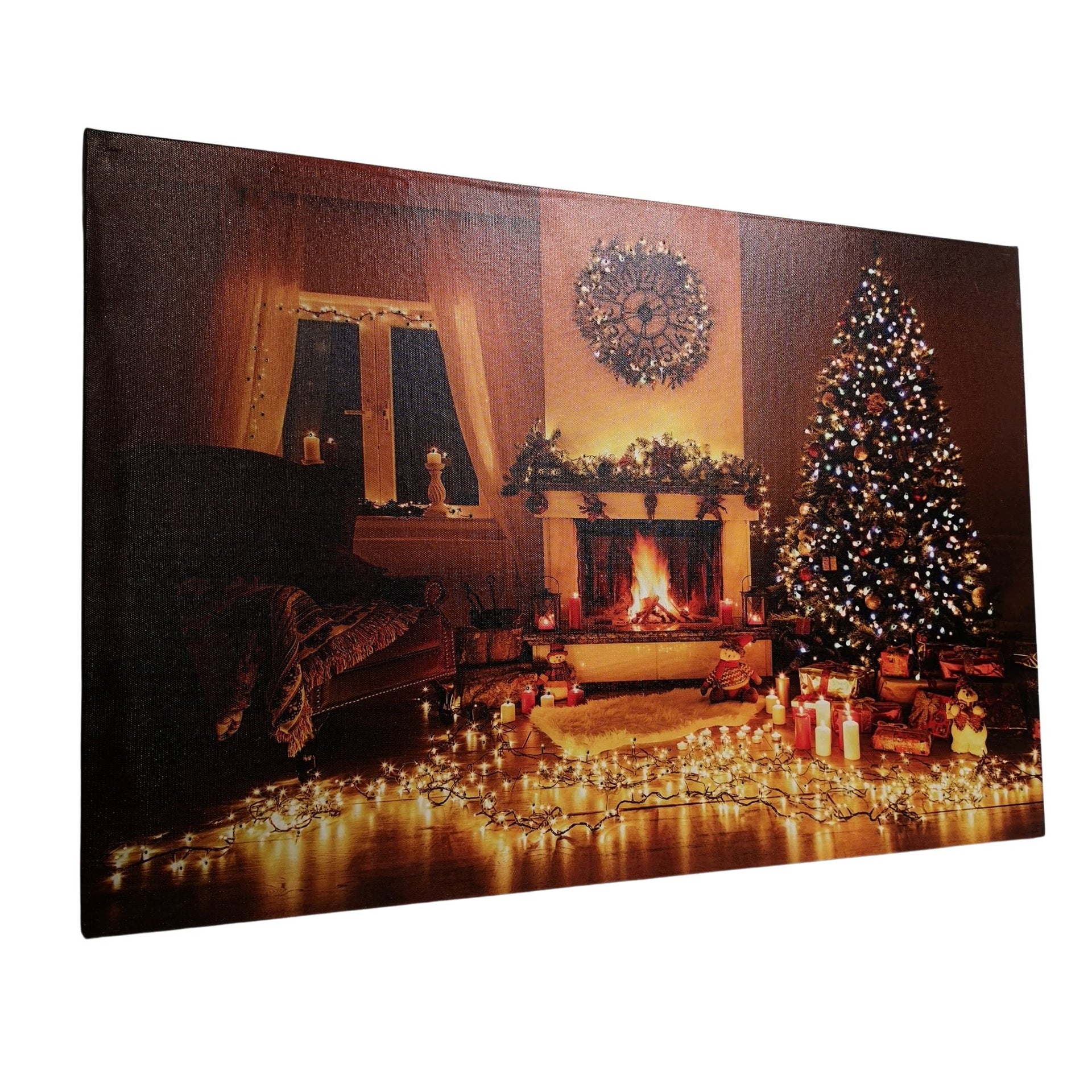 40 x 60cm Fibre Optic Wall Canvas with Christmas Tree Scene and Multicoloured LEDs