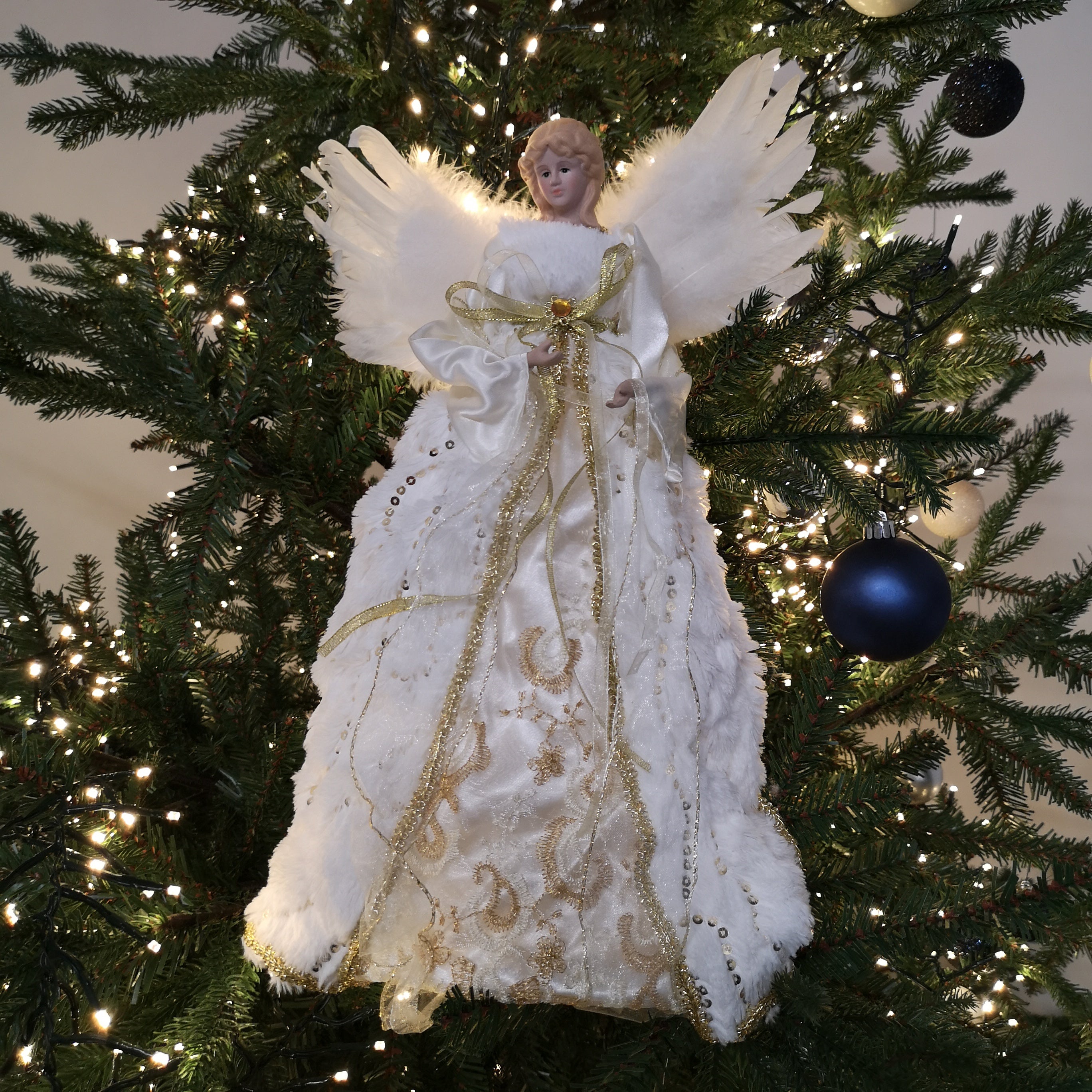 - 40cm Premier Deluxe Christmas Angel Tree Topper Decoration in Gold & White
