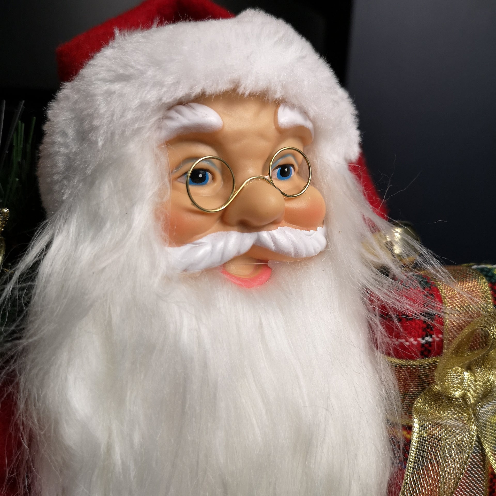 40cm Red Standing Santa Claus Indoor Decoration with Present and Green Sack