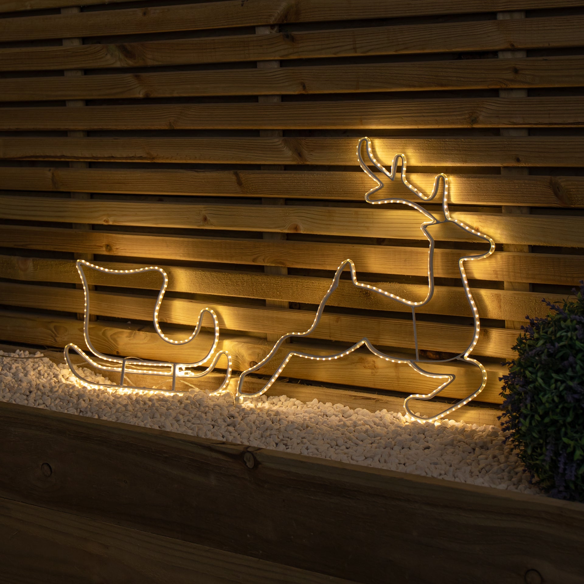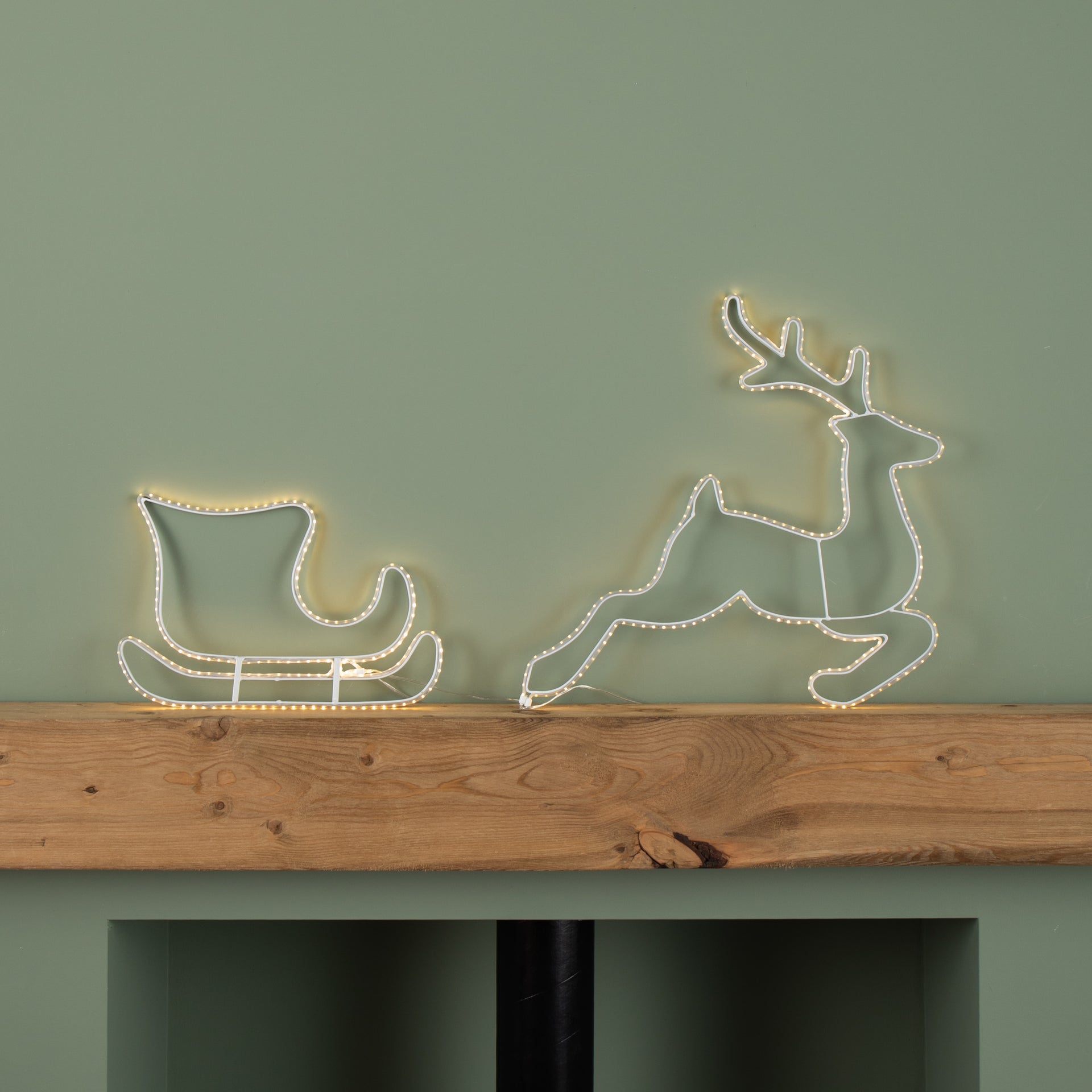 42cm Light up Hanging Christmas Reindeer and Sleigh Silhouette with Warm White LEDs