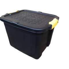 42L Heavy Duty Storage Tub Sturdy, Lockable, Stackable and Nestable Design Storage Chest with Clips in Black
