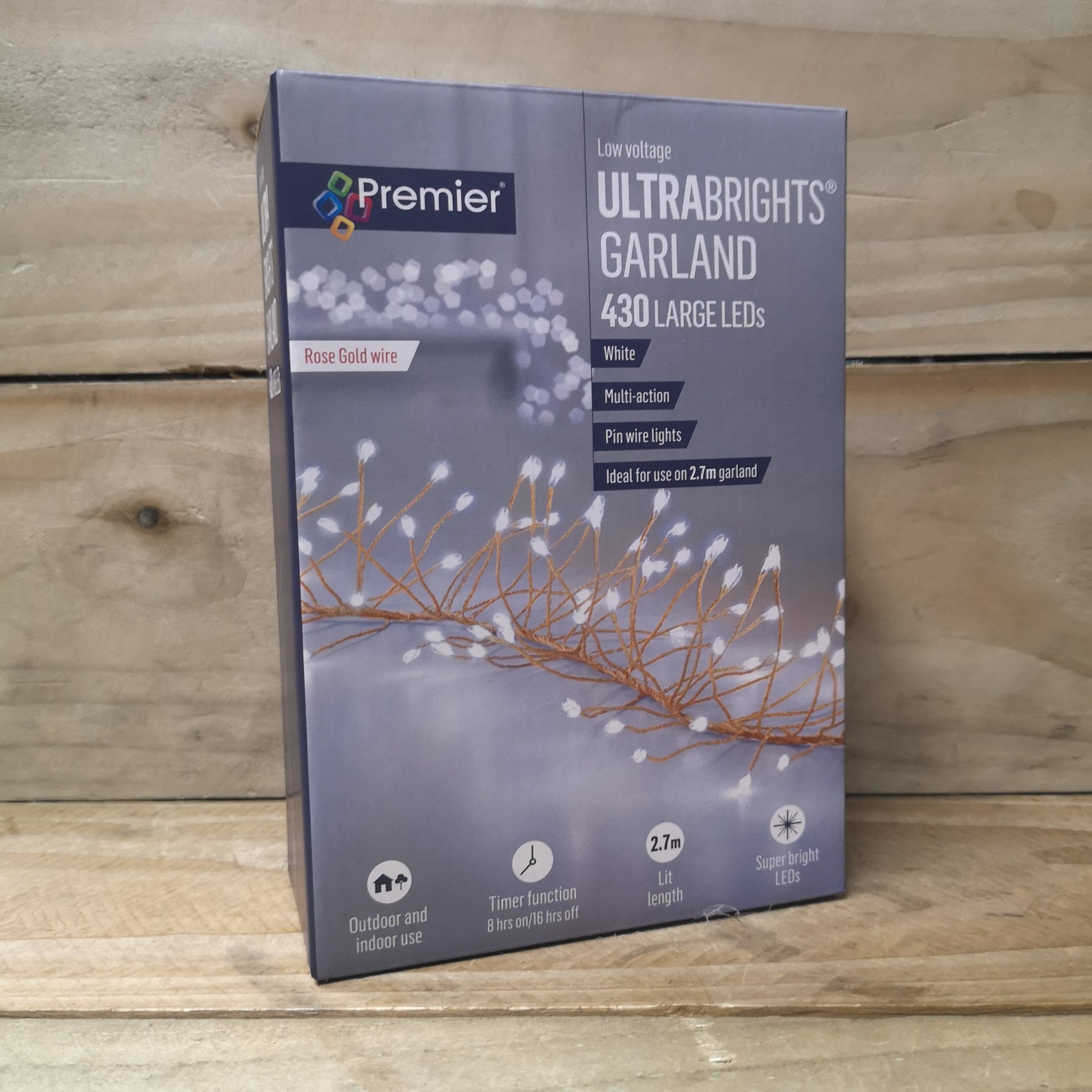 - 430 LED 2.7m Premier Outdoor Multi Function Christmas Garland Wire Lights in Cool White