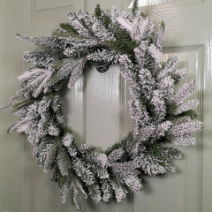 45cm Snow Flocked Green Wreath Christmas Decoration with 84 Tips