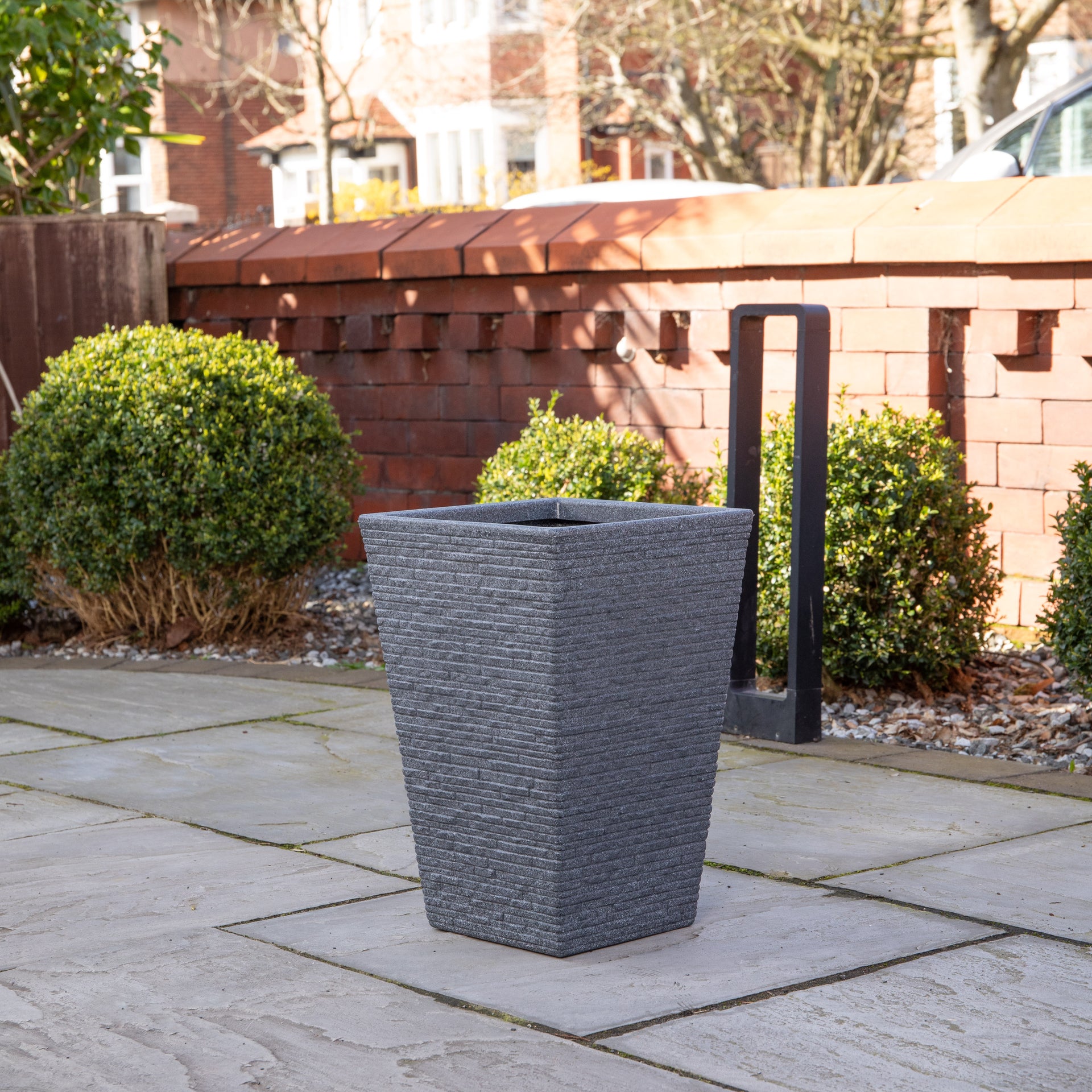 Built to withstand the elements, the planter is made from frost-resistant material, ensuring reliable performance throughout the year. Finished with an attractive slate effect, the planter mimics the natural texture and appearance of stone while retaining the practical benefits of plastic.
