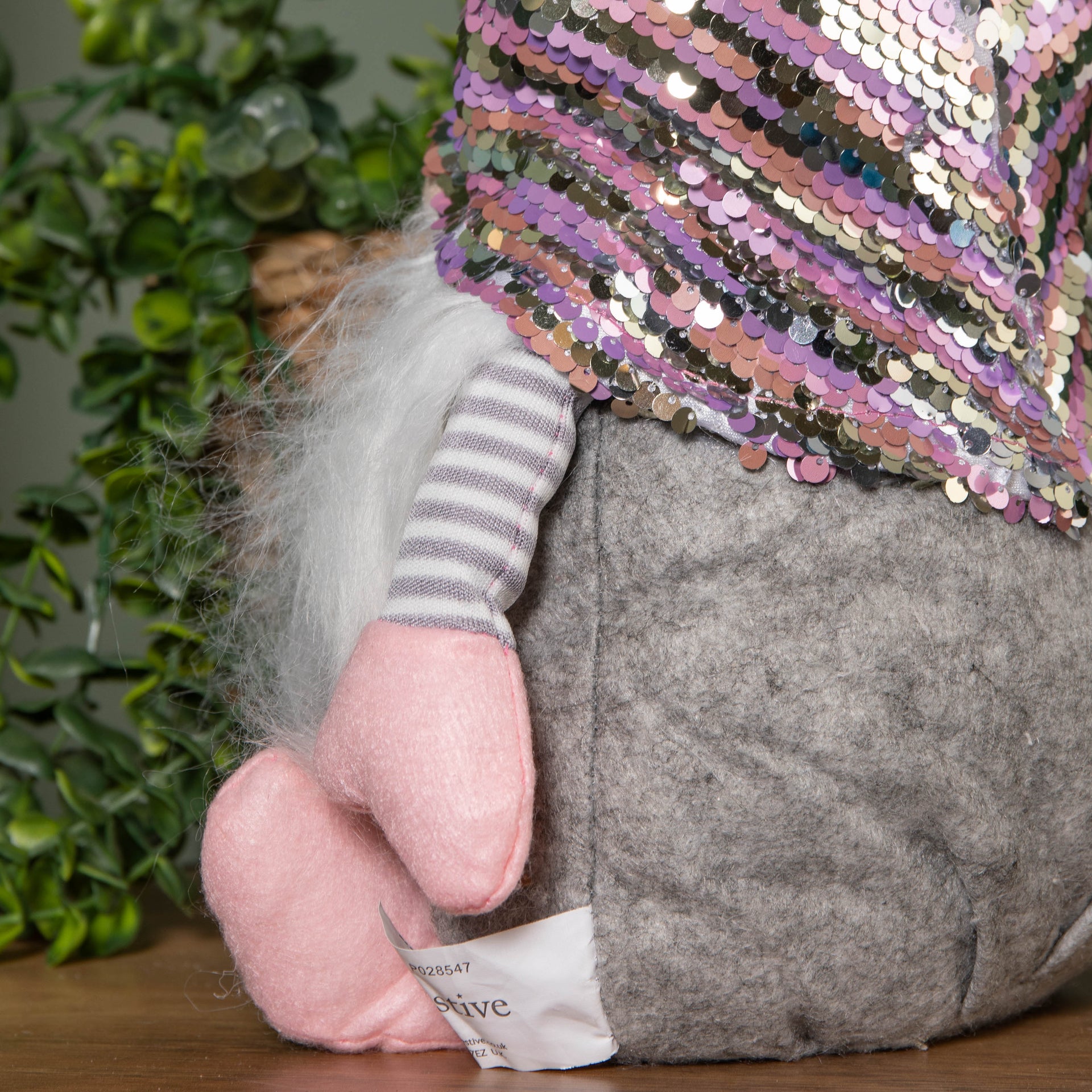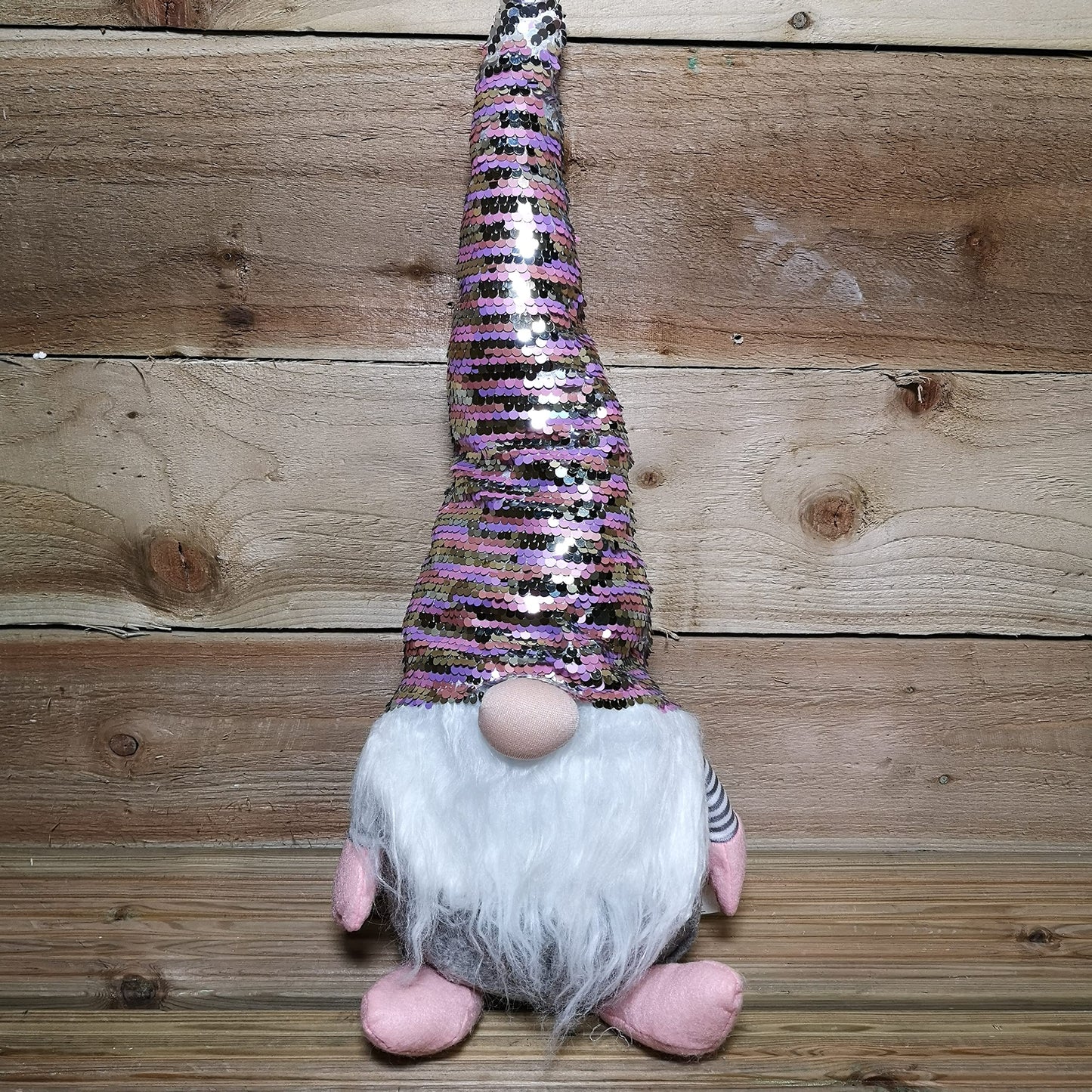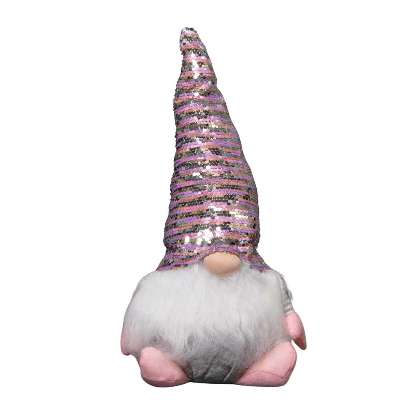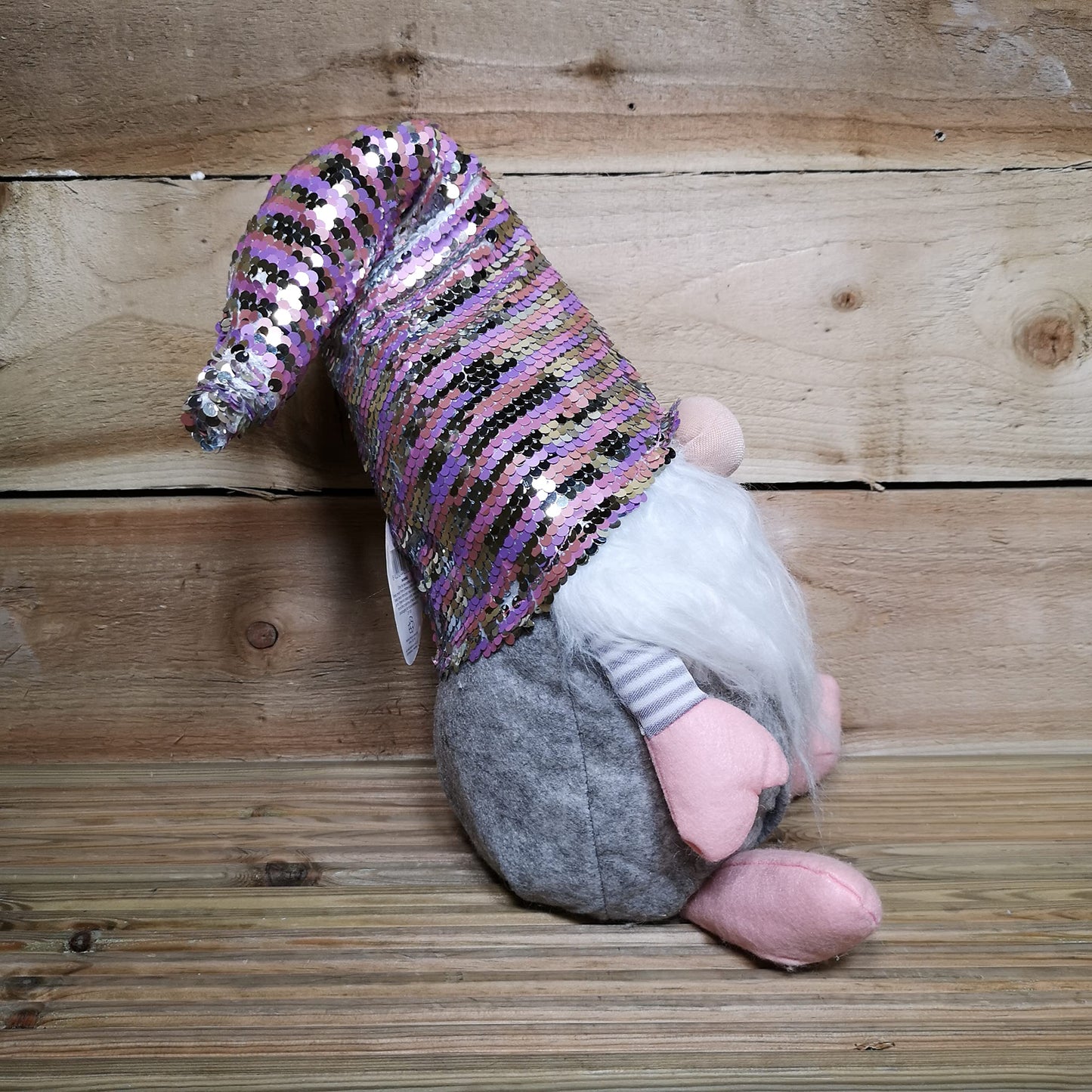46cm Plush Christmas Bearded Gonk with Pink & Silver Sequined Hat Christmas Decoration