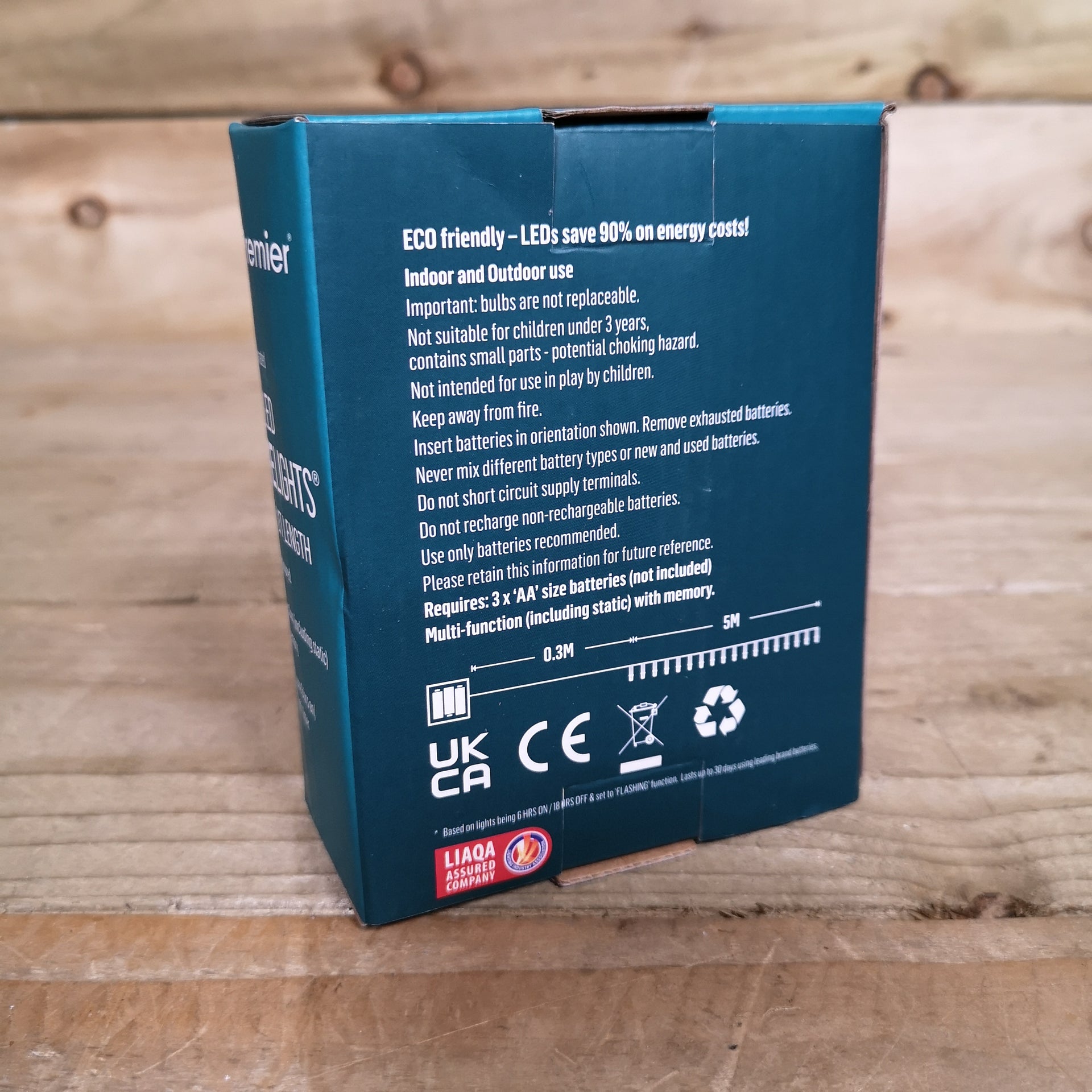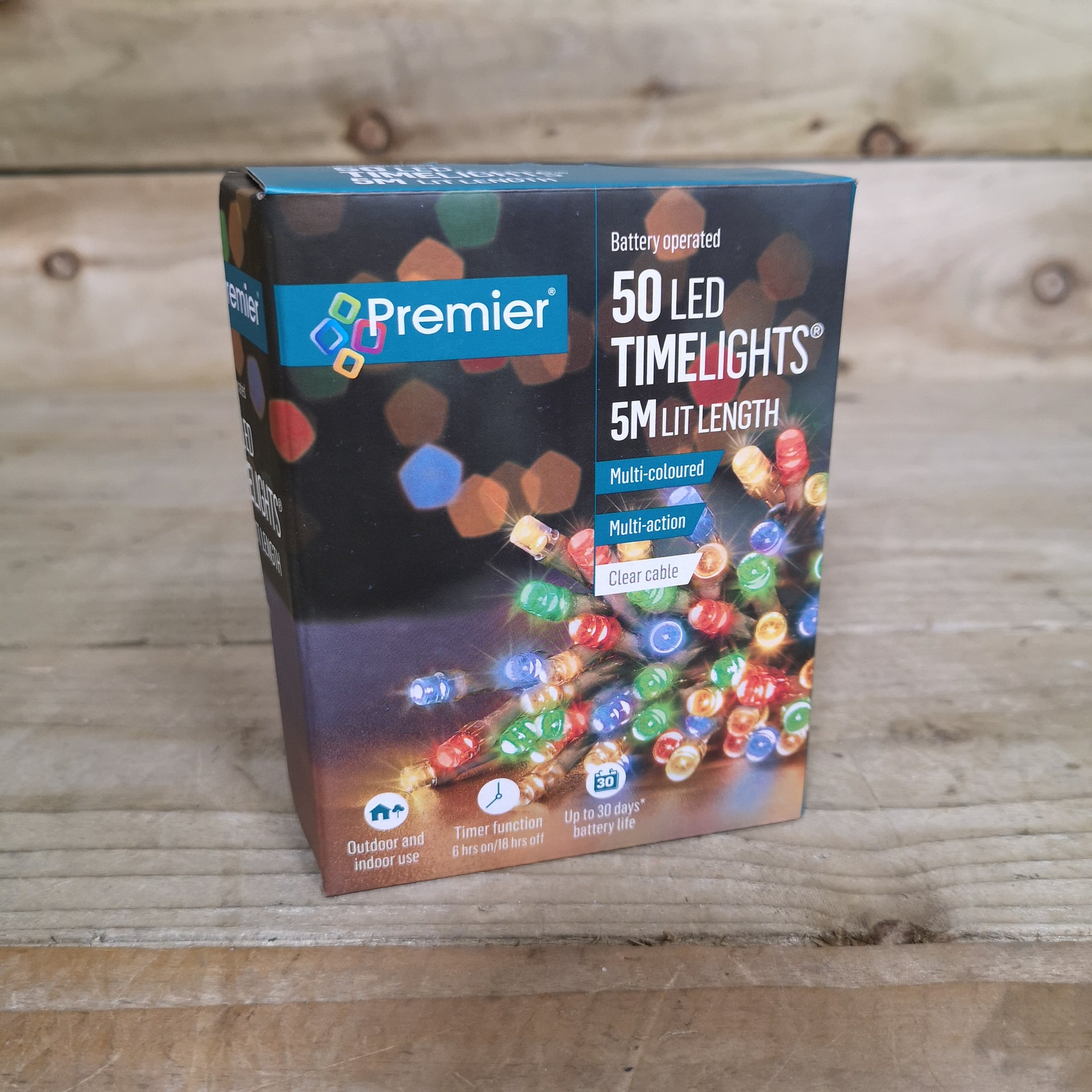 50 LED 5m Premier Christmas Outdoor Multi Function Battery Lights with Timer & Clear Cable in Multicoloured