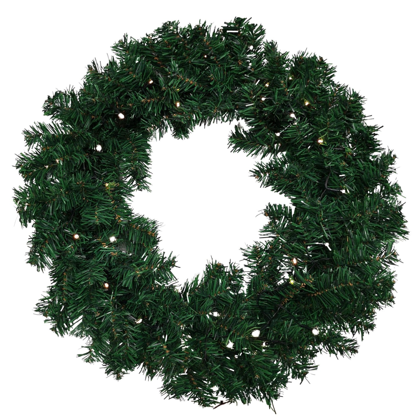60cm Pre Lit Plain Green Christmas Wreath with Warm White LEDs and 160 Tips