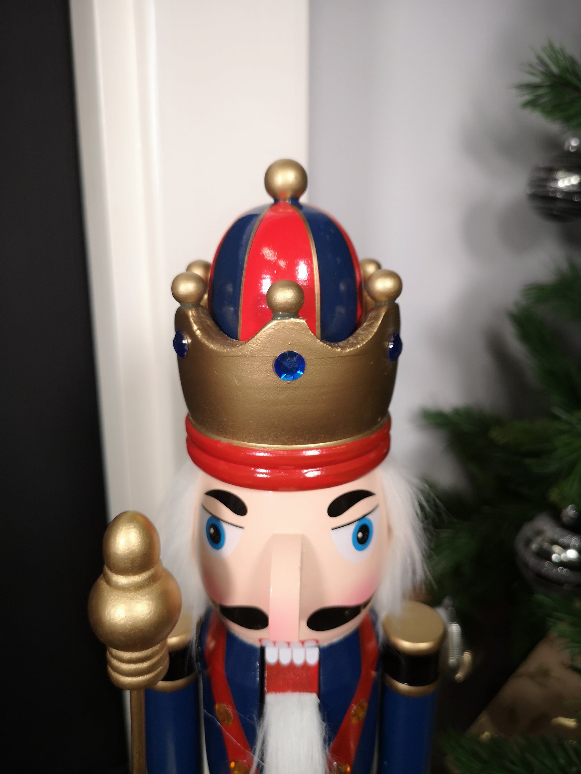 - 60cm Traditional Wooden Christmas Nutcracker Decoration with Blue Body