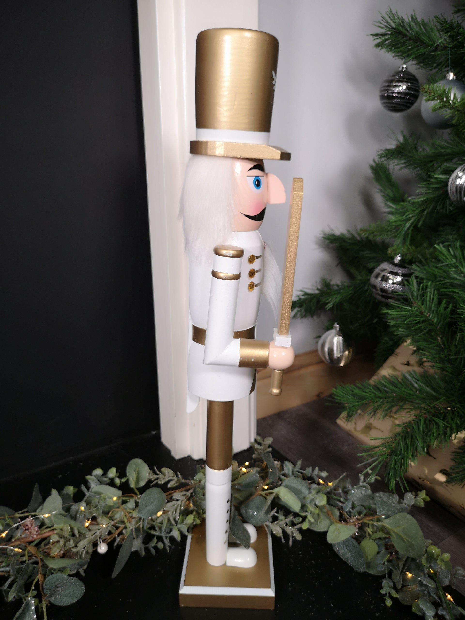 - 60cm Wooden Christmas Nutcracker Soldier Decoration with White Body and Shoes