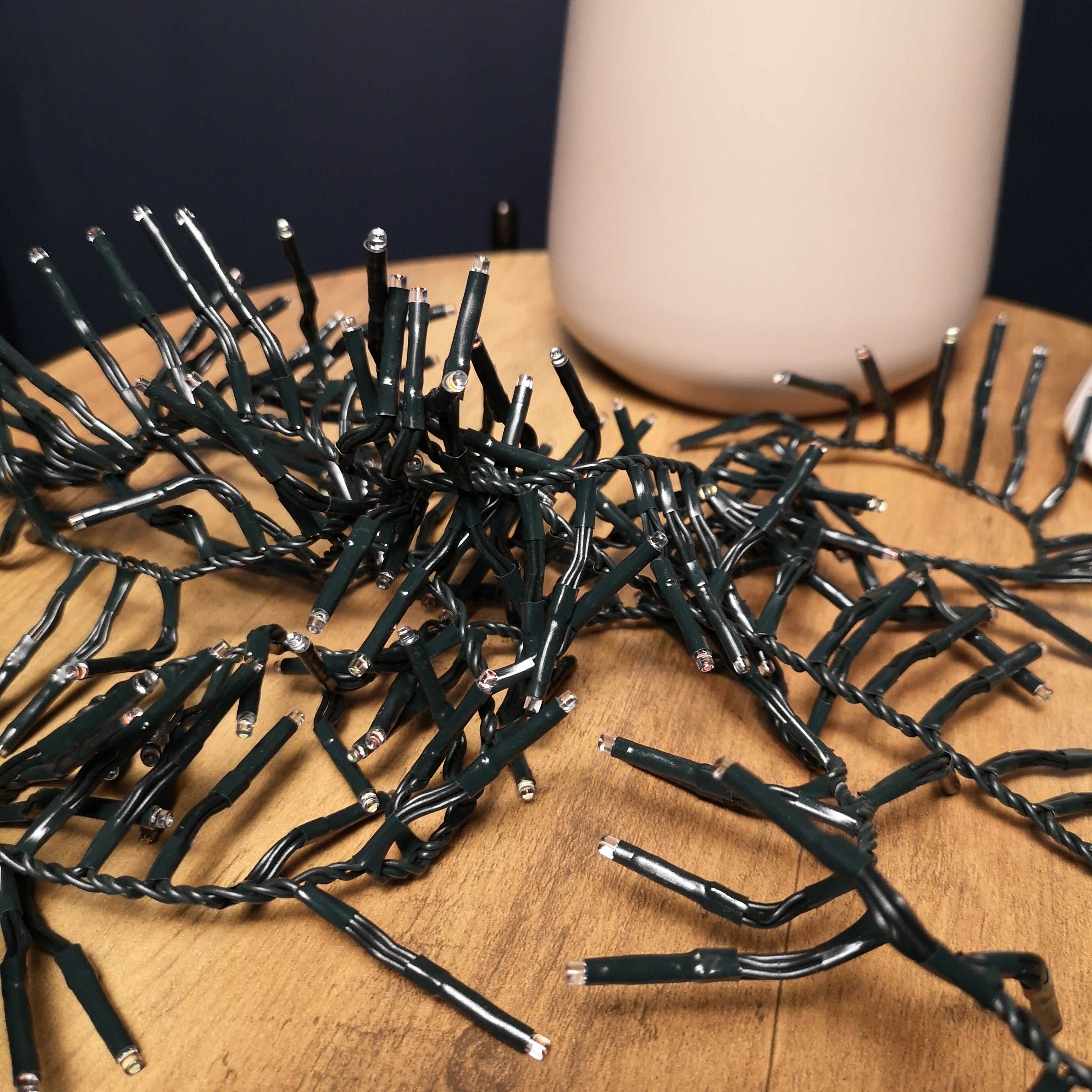 Brighten up your home this Christmas with these enchanting LED switcher Cluster lights Christmas decorations. With a lit length of 62.5m and a 10m power cable, these cluster lights are the perfect addition to any festive display. Featuring 5000 bright non-replaceable Multi-coloured LEDs, these are perfect for anywhere around your home or garden whether you choose to wrap them around the Bannister, Christmas Tree or the roof of the house. These lights are mains powered by a dark Green 10m cable from plug to first light. Fitted with a selector button, there are 8 settings. These include Steady, Slo-Glo, Sequential, Twinkle, Slow Fade. The lights include a timer function setting with 8 hours on 16 hours off. Suitable for indoor and outdoor use (transformer must remain dry at all times). Dimensions: 62.5m lit length 10m power cable.