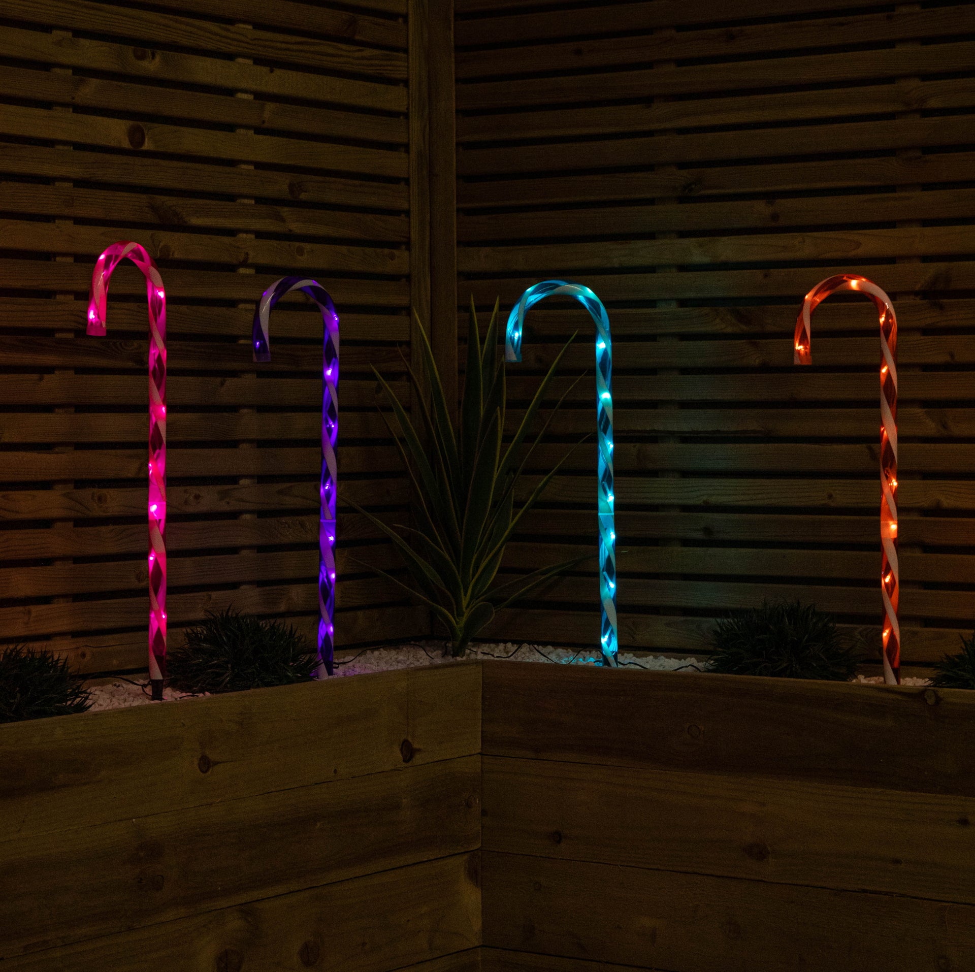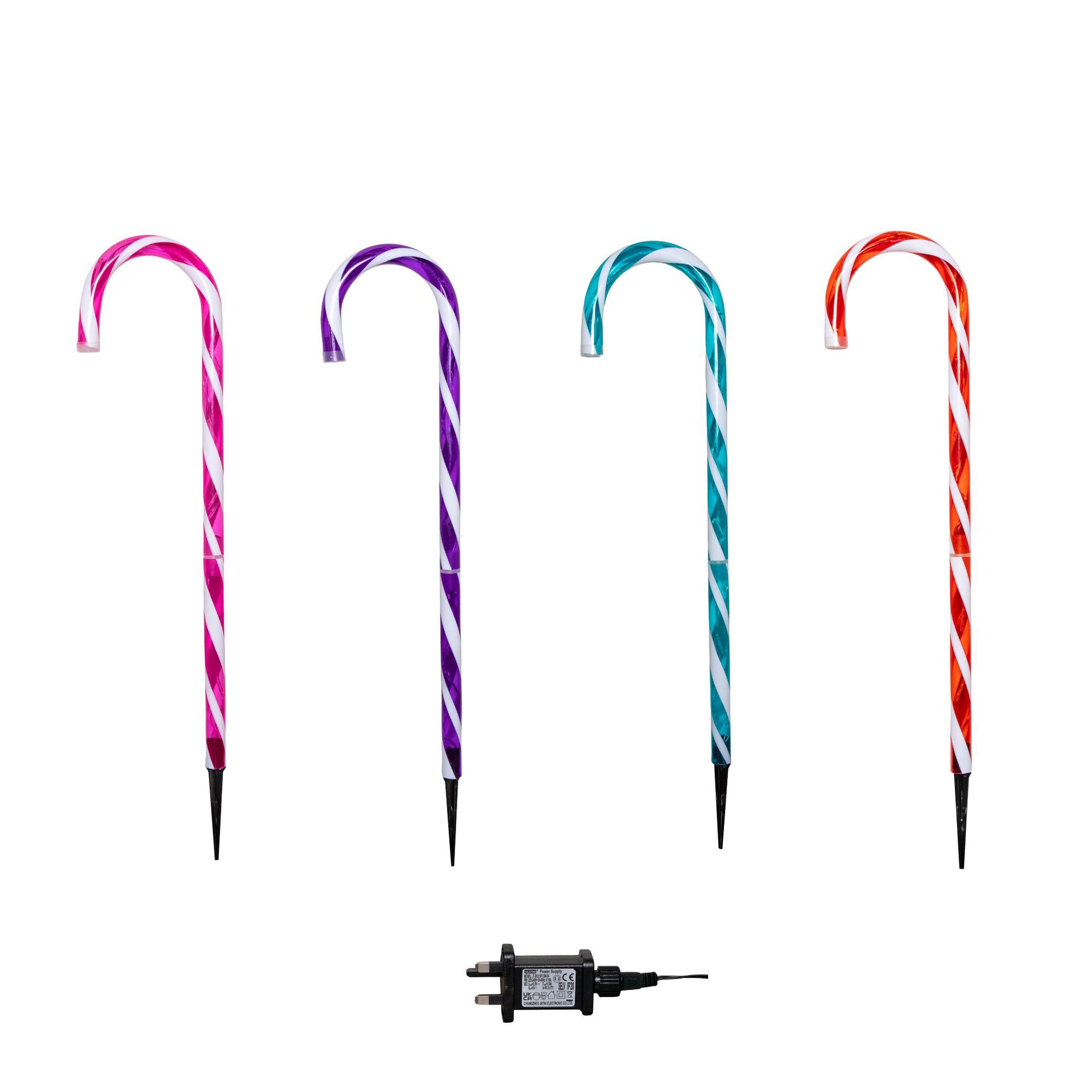 62cm Set of 4 Light up Christmas Candy Cane Garden Path Lights with 40 Rainbow LEDs