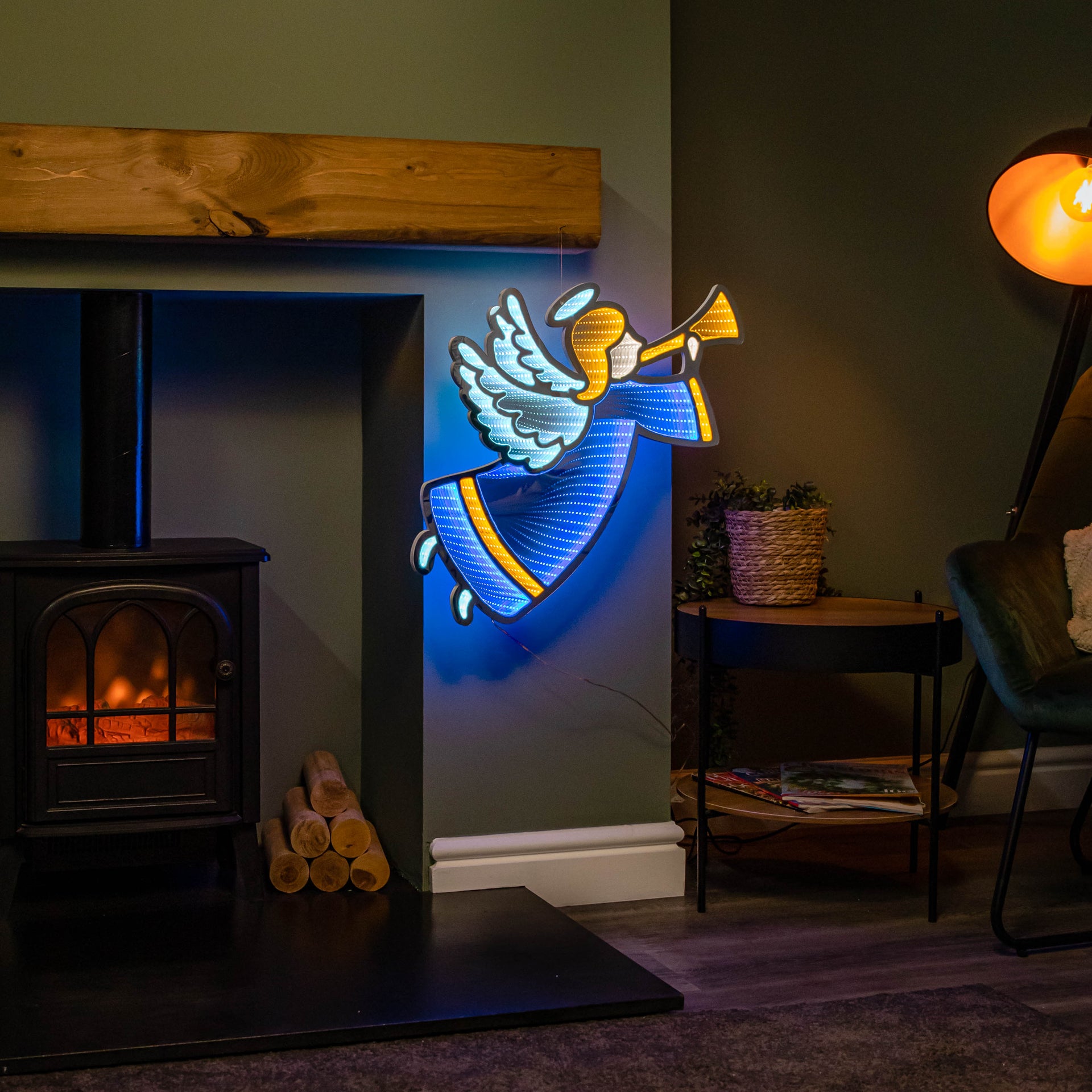65cm Infinity Hanging Christmas Angel with Blue and Gold LEDs